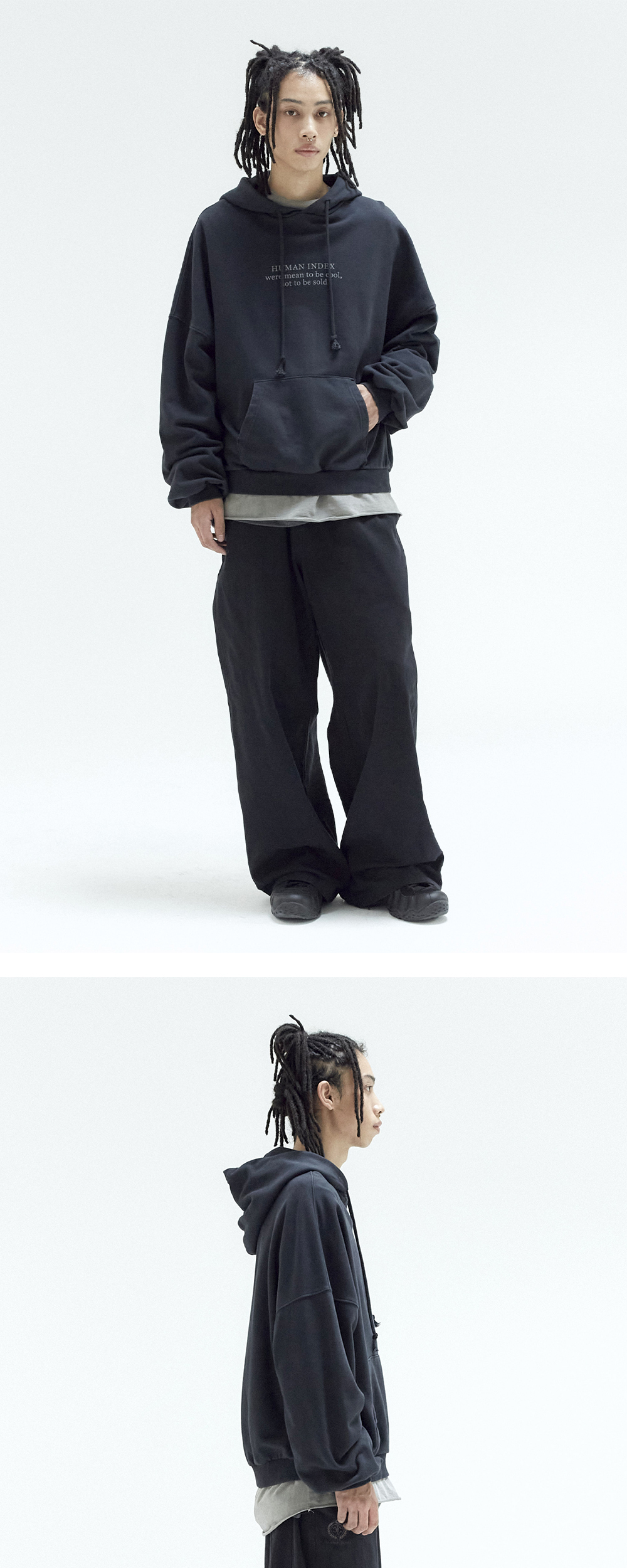 폴리테루 휴먼인덱스 휴먼 루즈드 스웨트 후디 레터링 워시드 잉크