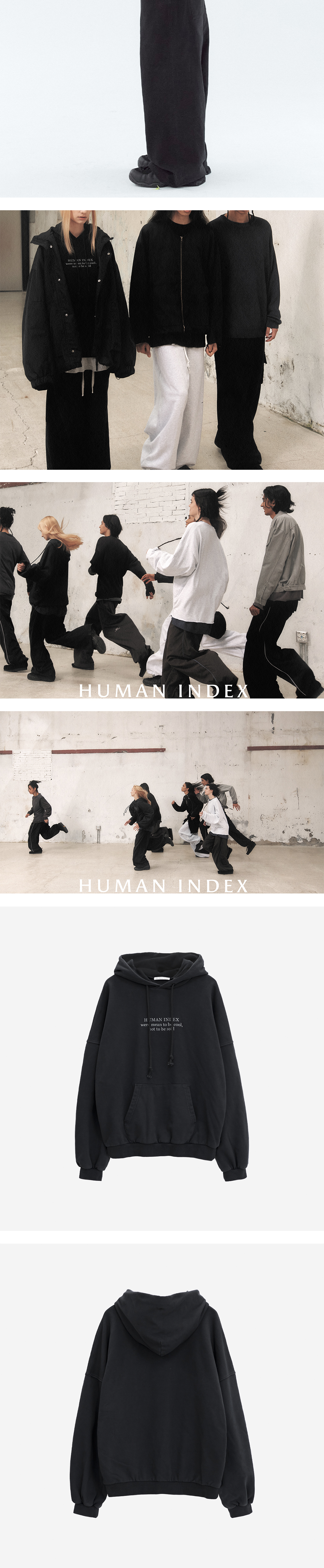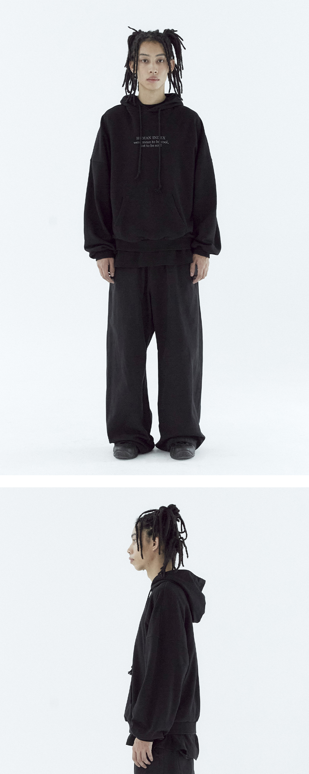 폴리테루 휴먼인덱스 휴먼 루즈드 스웨트 후디 레터링 워시드 블랙