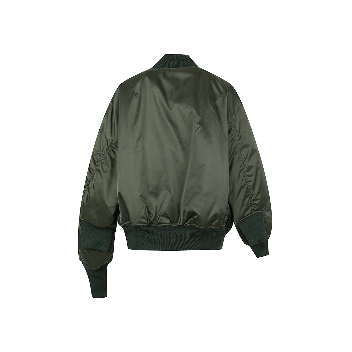 뒤틀린 듯한 형태와 이중 소매 디테일이 매력적인 후미토 간류의 MA-1 자켓입니다. - 오버 핏 - 왜곡된 패턴이면서도, 착용 시 안정감을 고려하여 제작됨 - 비대칭적인 소매 기장 - 길이가 긴 좌측 소매는 손을 뺄 수 있는 슬릿 존재 - 고밀도 나일론 소재