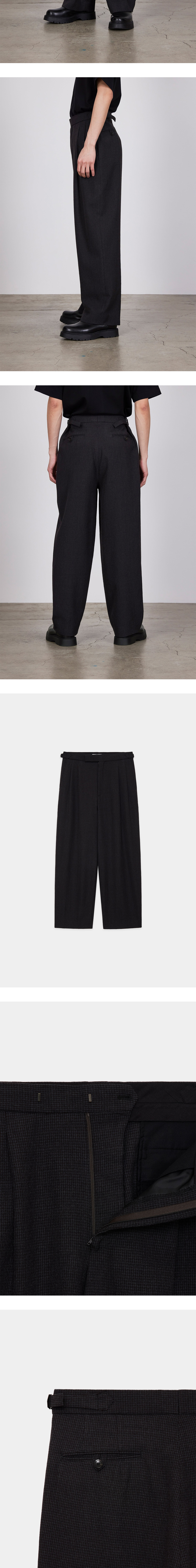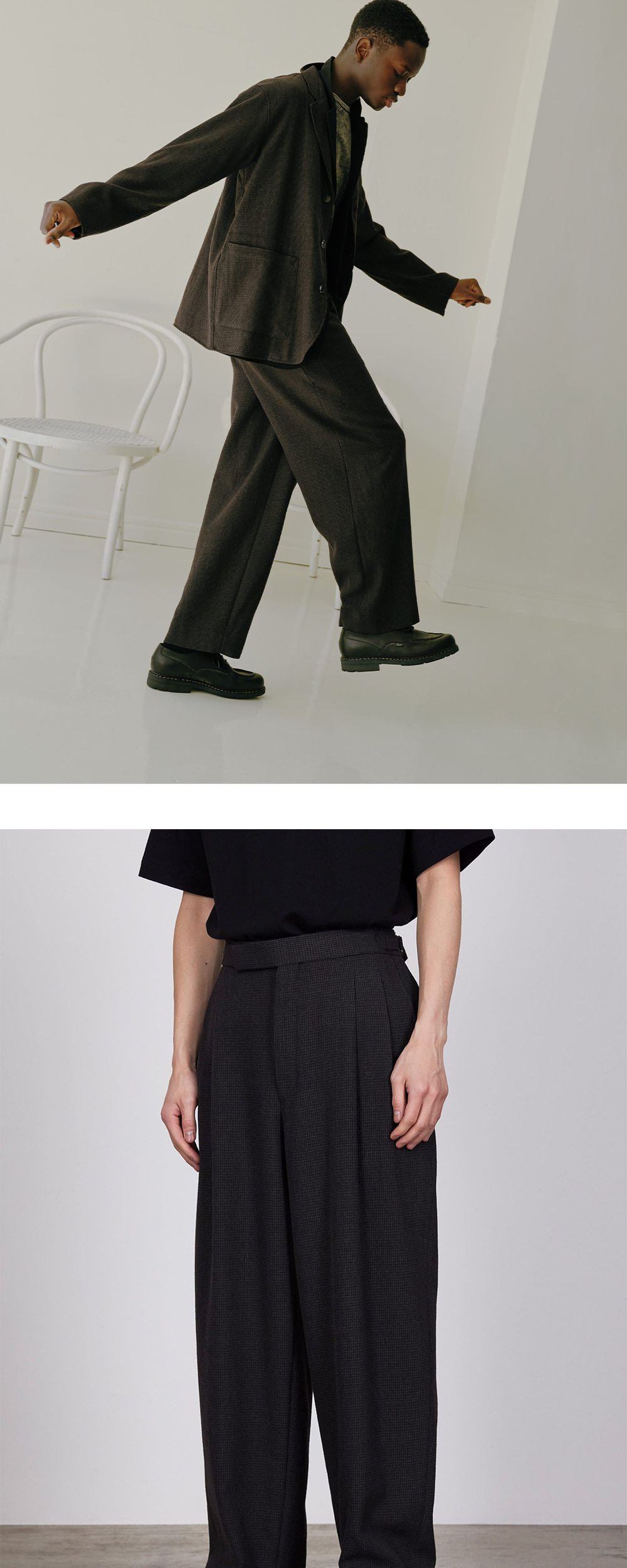 풍성한 실루엣과 2개의 턱으로 입체적인 라인을 연출할 수 있는 마카의 오피서 팬츠입니다. - 영국 육군 드레스 팬츠를 기반으로 한 디자인 - 두께감 있는 울 소재 - 사이드 어드저스터로 허리 조절 가능 - 벨트루프를 제거하여 상의를 넣어입기 적합한 디자인 - 브랜드 색상명: Hound Tooth