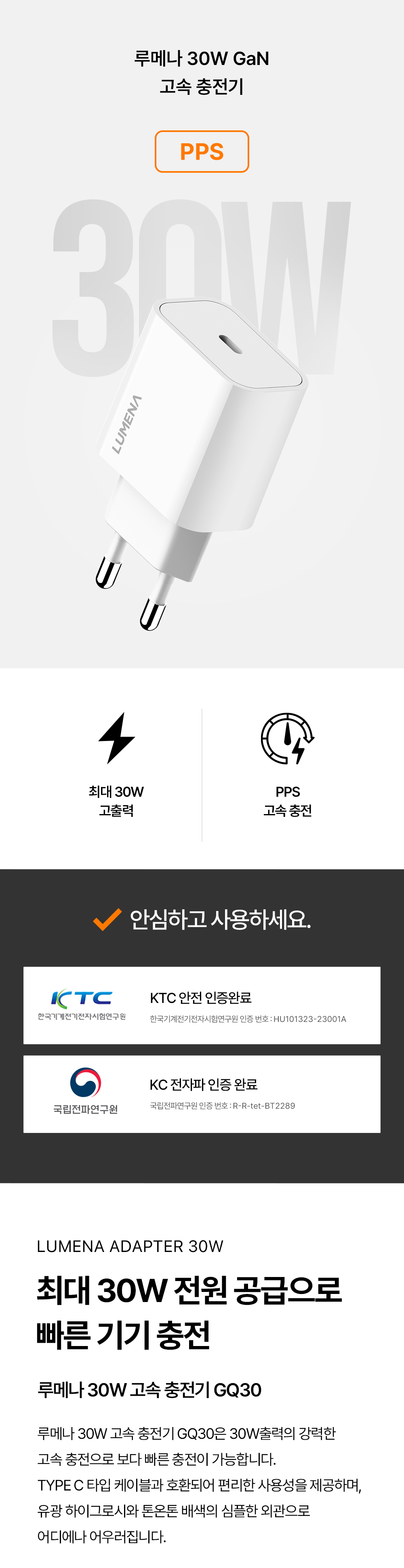 루메나 30W Gan 초고속 충전기 GQ30 블랙