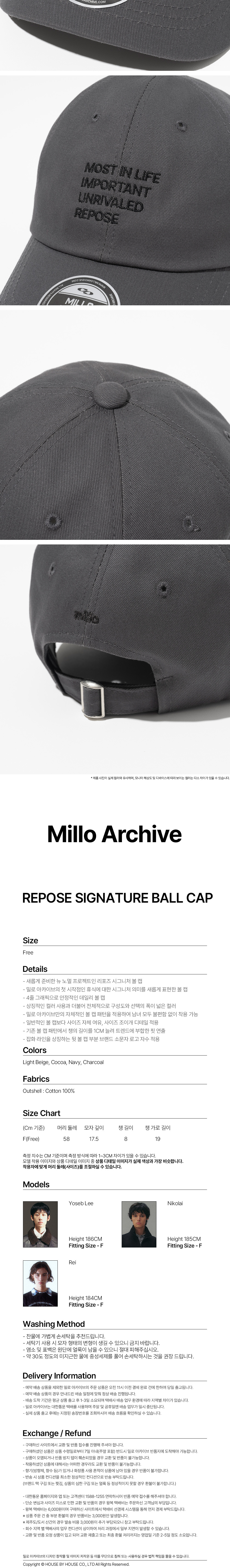 밀로 아카이브 리포즈 시그니처 볼 캡 차콜