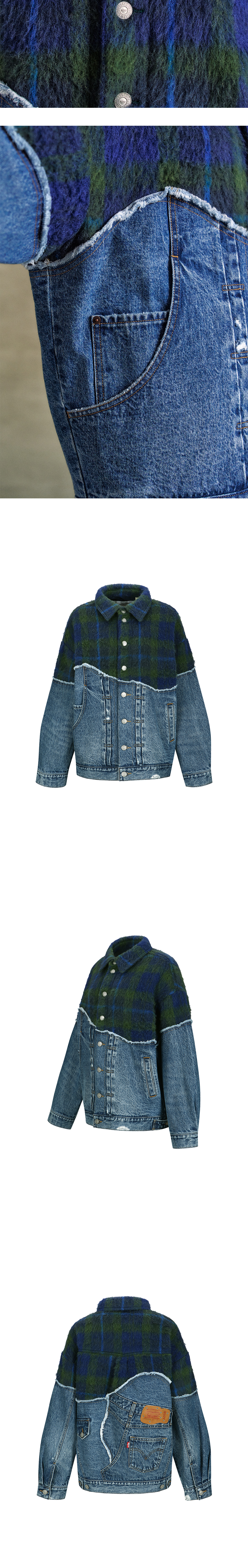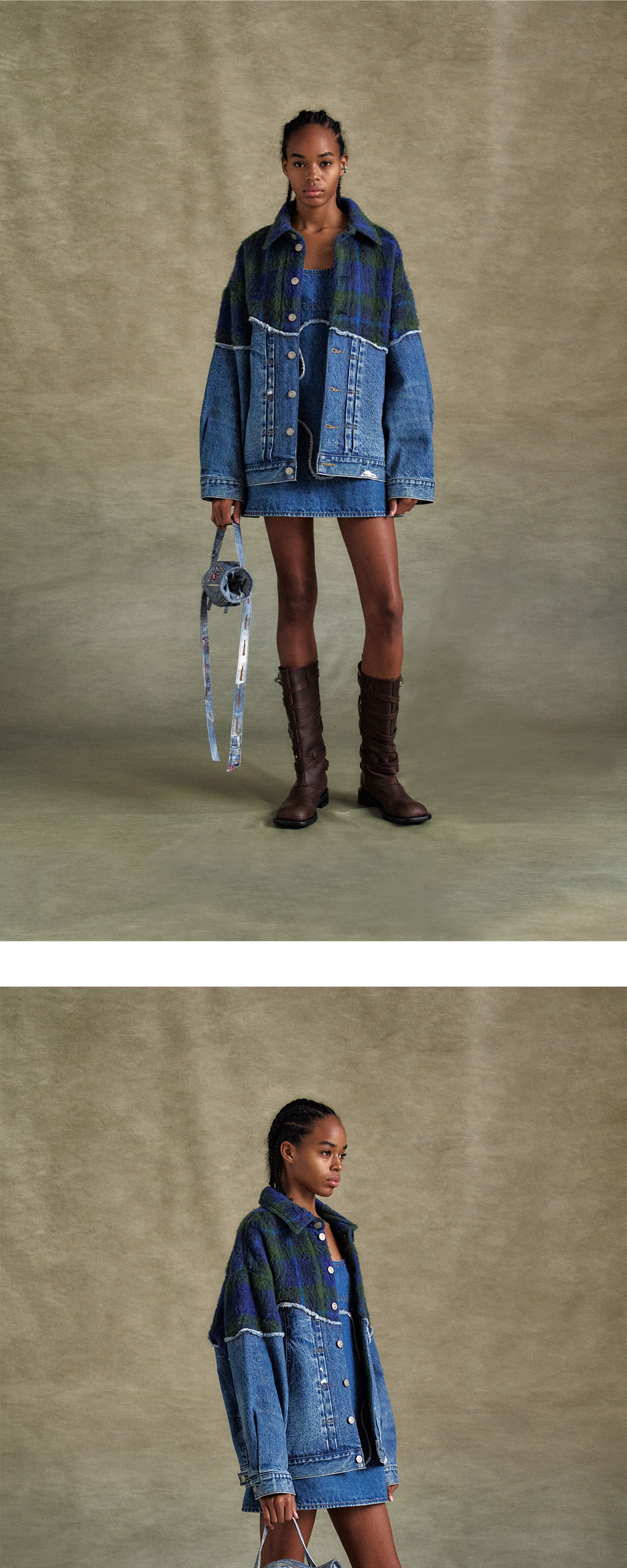 Spliced Trucker는 ADSB의 울 소재와 신축성이 없는 데님을 사용하여 약간 오버사이즈된 자켓의 핏으로 된 디자인이며, 중앙 앞면에 타입 II 주름이 있는 전통적인 리바이스®의 특징이 엮어져있습니다. - LEVIS X ADSB SPLICED TRUCKER - ADSB의 울 소재와 데님을 사용 - 오버사이즈 핏 - 드랍 숄더 - 중앙 앞면에 타입 II 주름이 있는 전통적인 리바이스®의 특징
