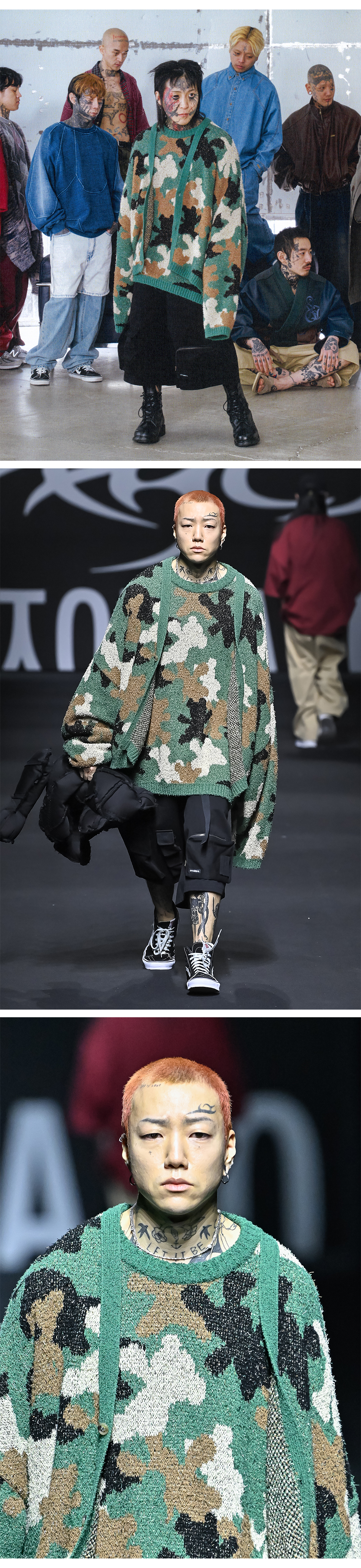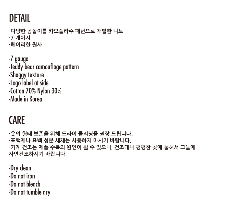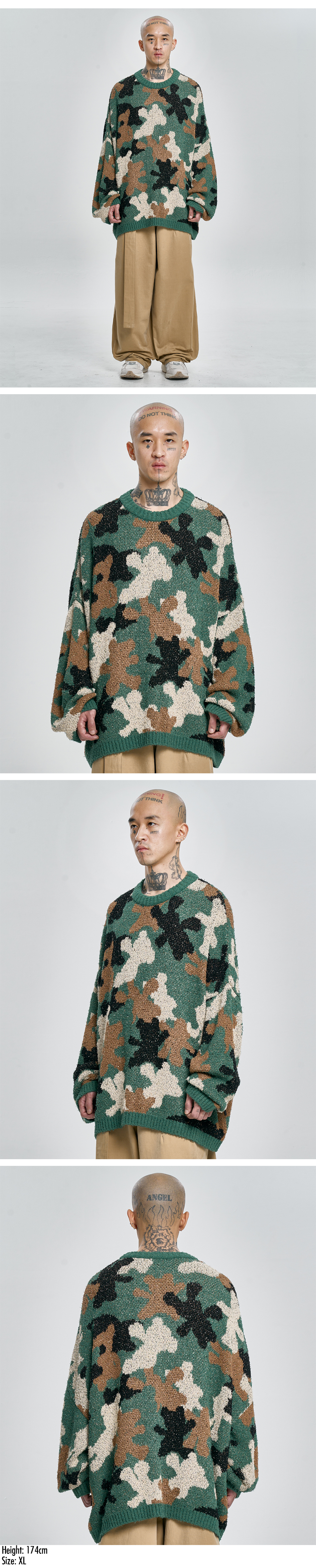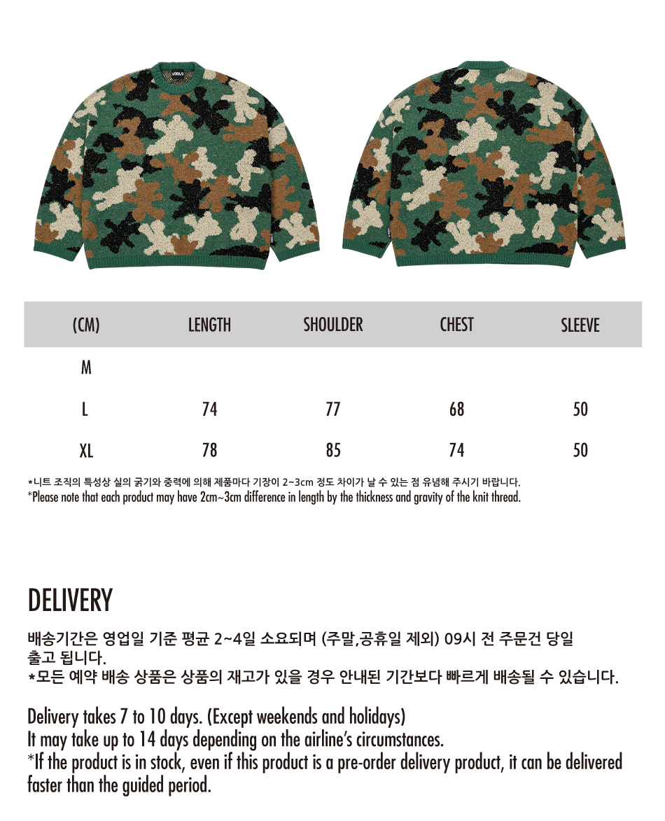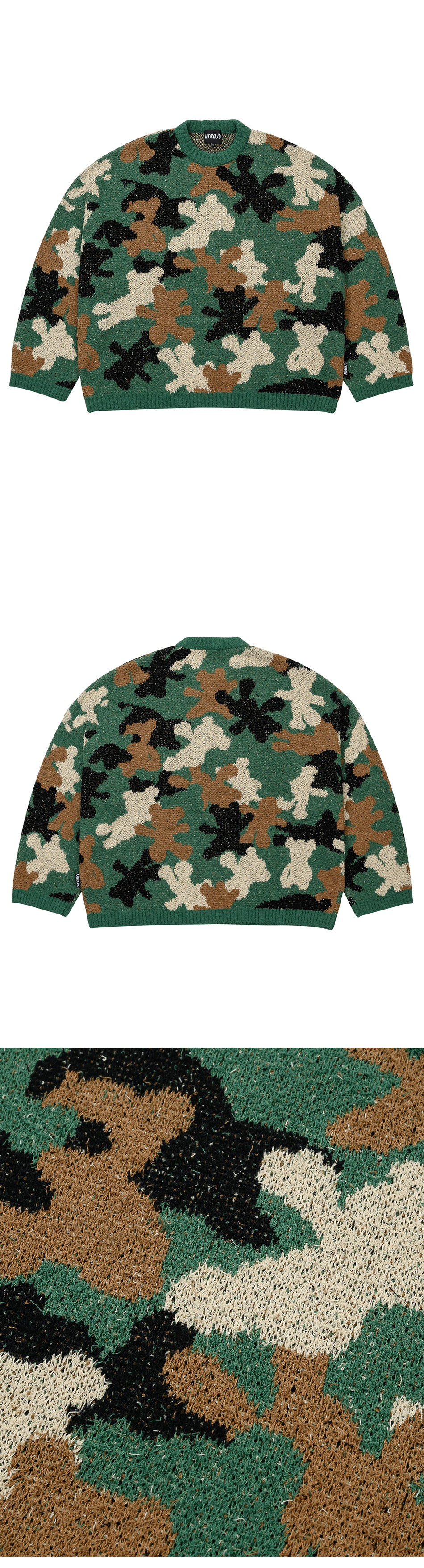 아조바이아조 테디 베어 카모플라쥬 니트 스웨터 카키