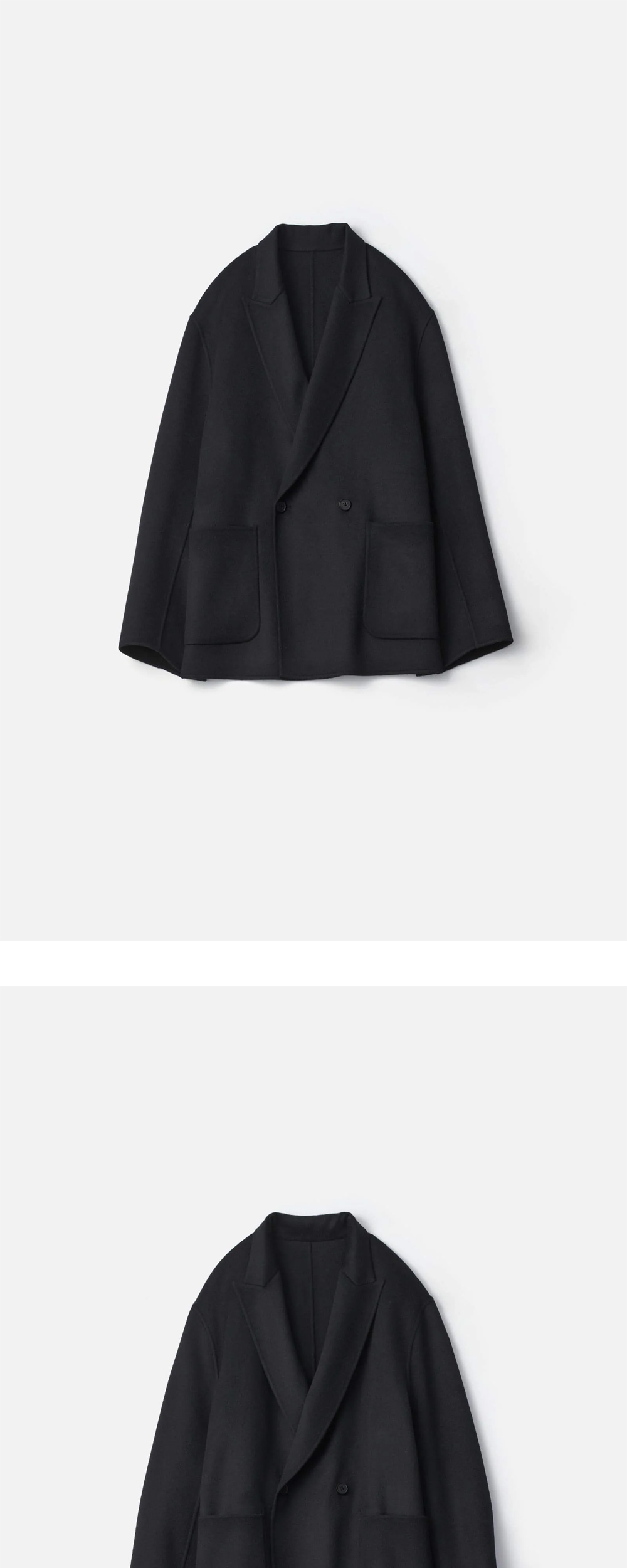 고급지면서 가볍고 부드러운 울 캐시미어의 ssstein의 리버시블 피크 라펠 자켓입니다. - 부드러운 울 캐시미어 - 가벼운 착용감 - 더블 브레스티드 - 스티치가 나오지 않는 리버 봉제 - 리버시블 디자인