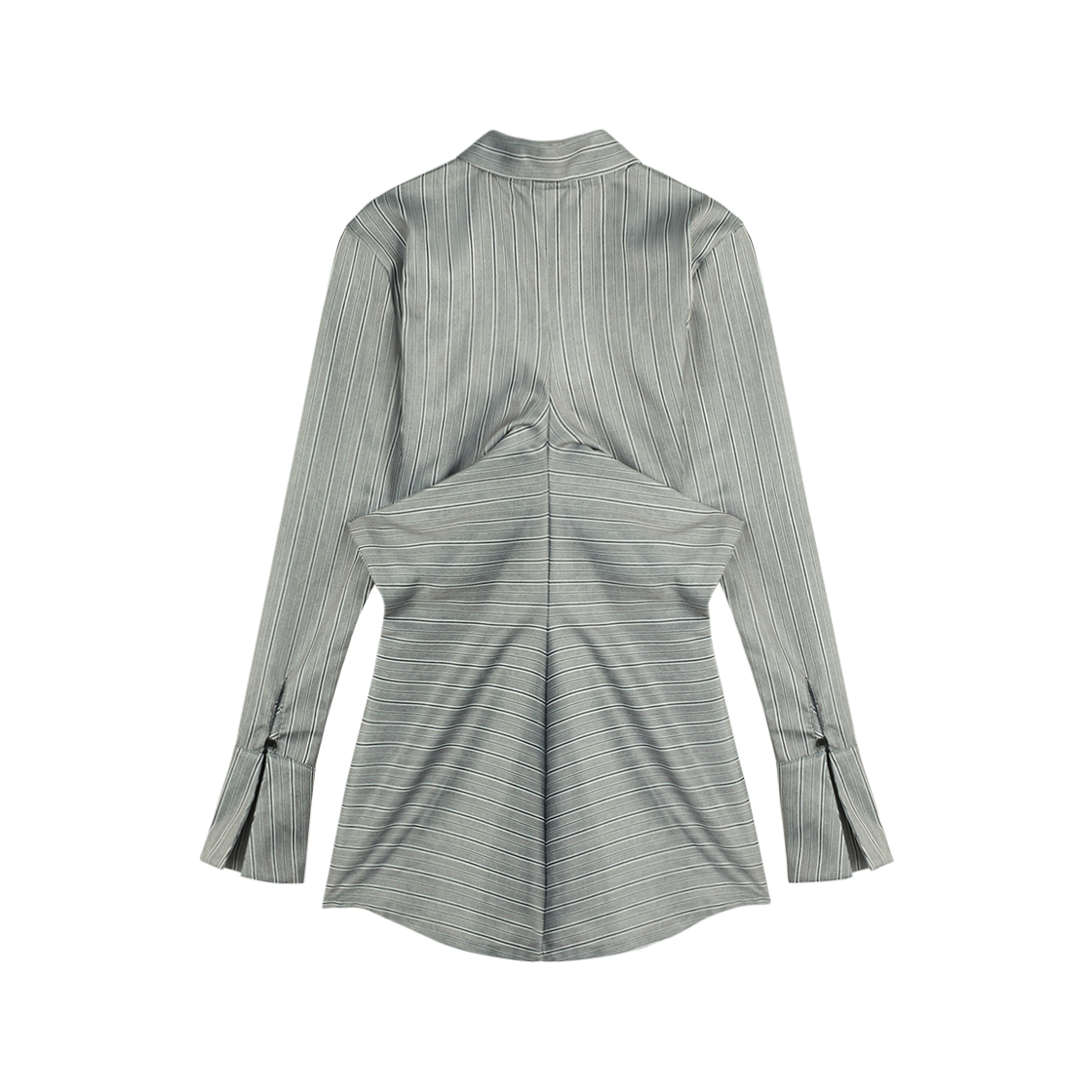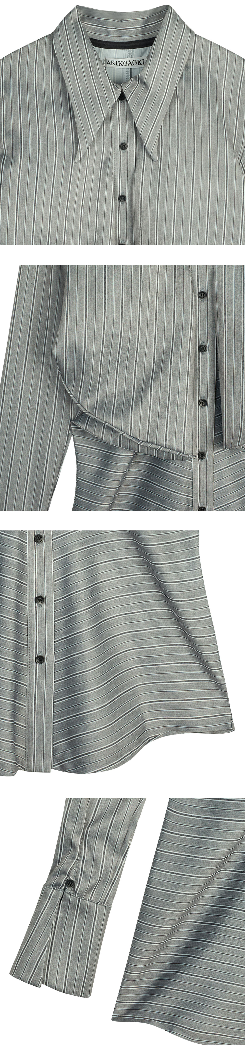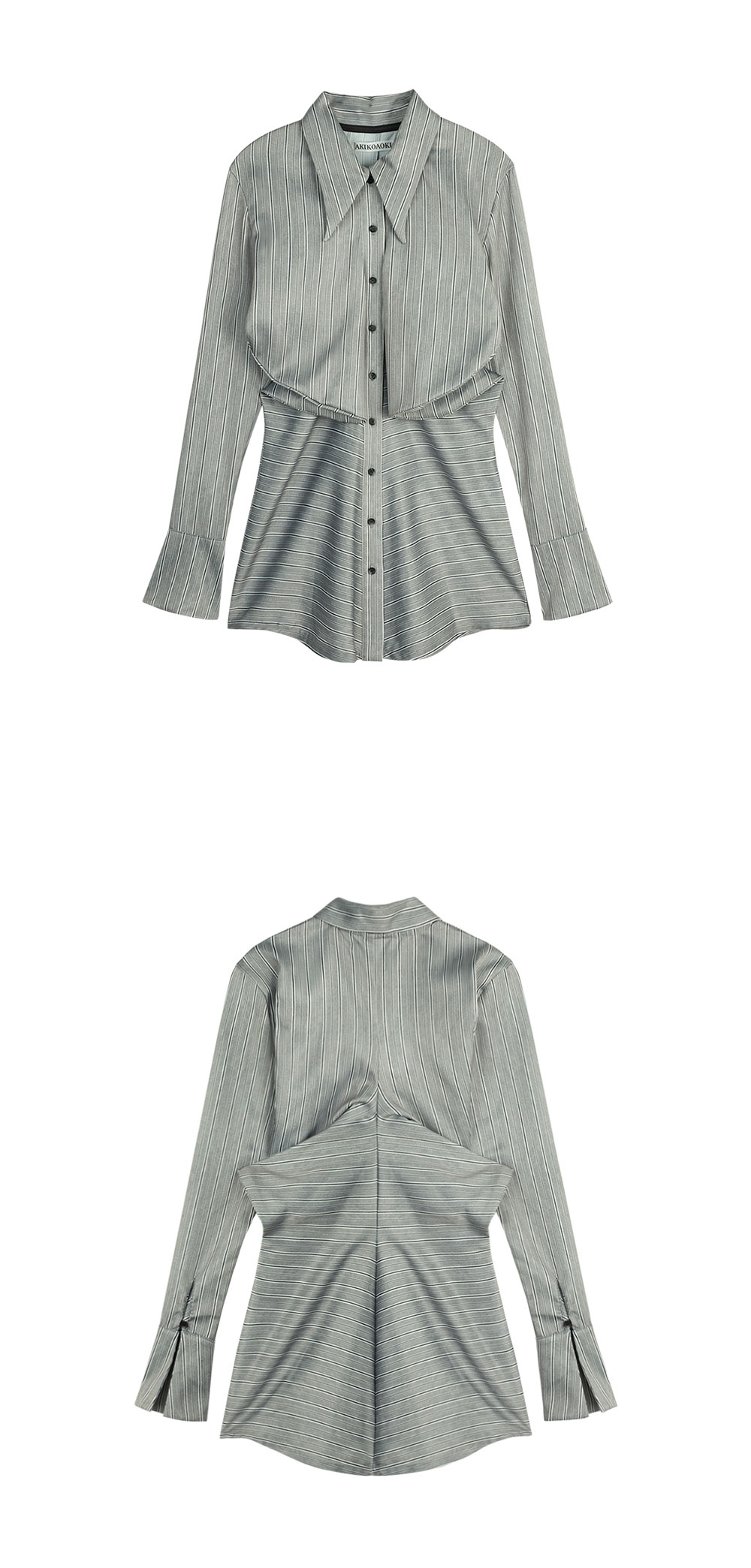세련된 원단과 셔링으로 룩에 입체감을 더해주는 아키코아오키의 하이디 03 셔츠입니다. - 포멀한 원단감 - 가슴부터 허리까지 연결된 셔링 디테일 - 신체 라인이 강조되는 실루엣 - 긴 기장 - 소매 버튼으로 다양한 연출 가능