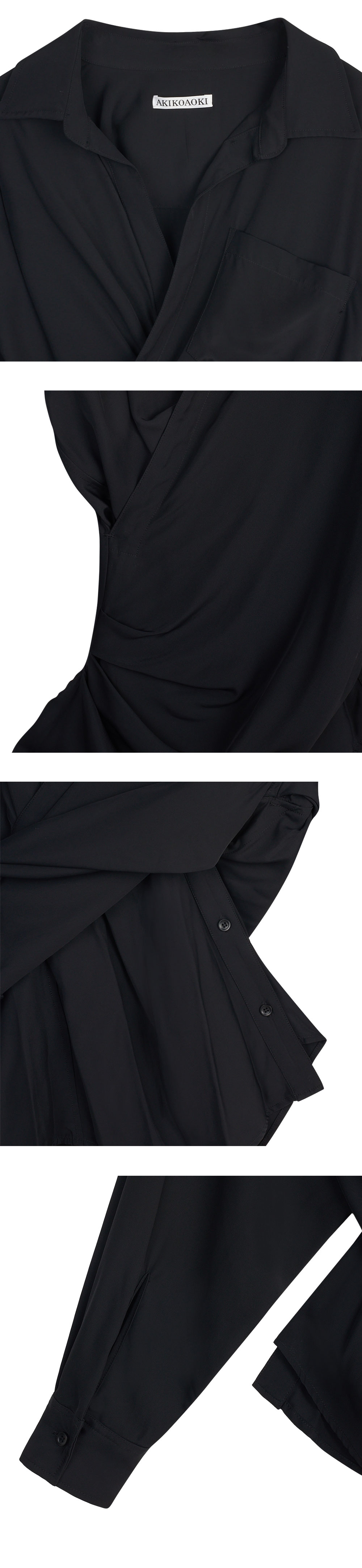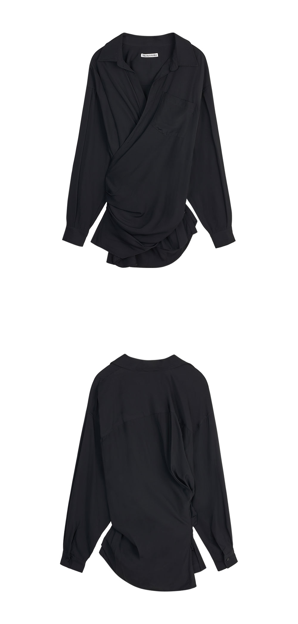 허리를 부각시키는 셔링 디테일과 아름다운 드레이핑이 매력적인 아키코아오키의 롤라 01 셔츠입니다. - 드롭 숄더 - 몸에 셔츠를 감싼듯한 디자인 - 전/후면 셔링 디테일 - 히든 버튼 클로징 - 소매 버튼으로 실루엣 조절 가능
