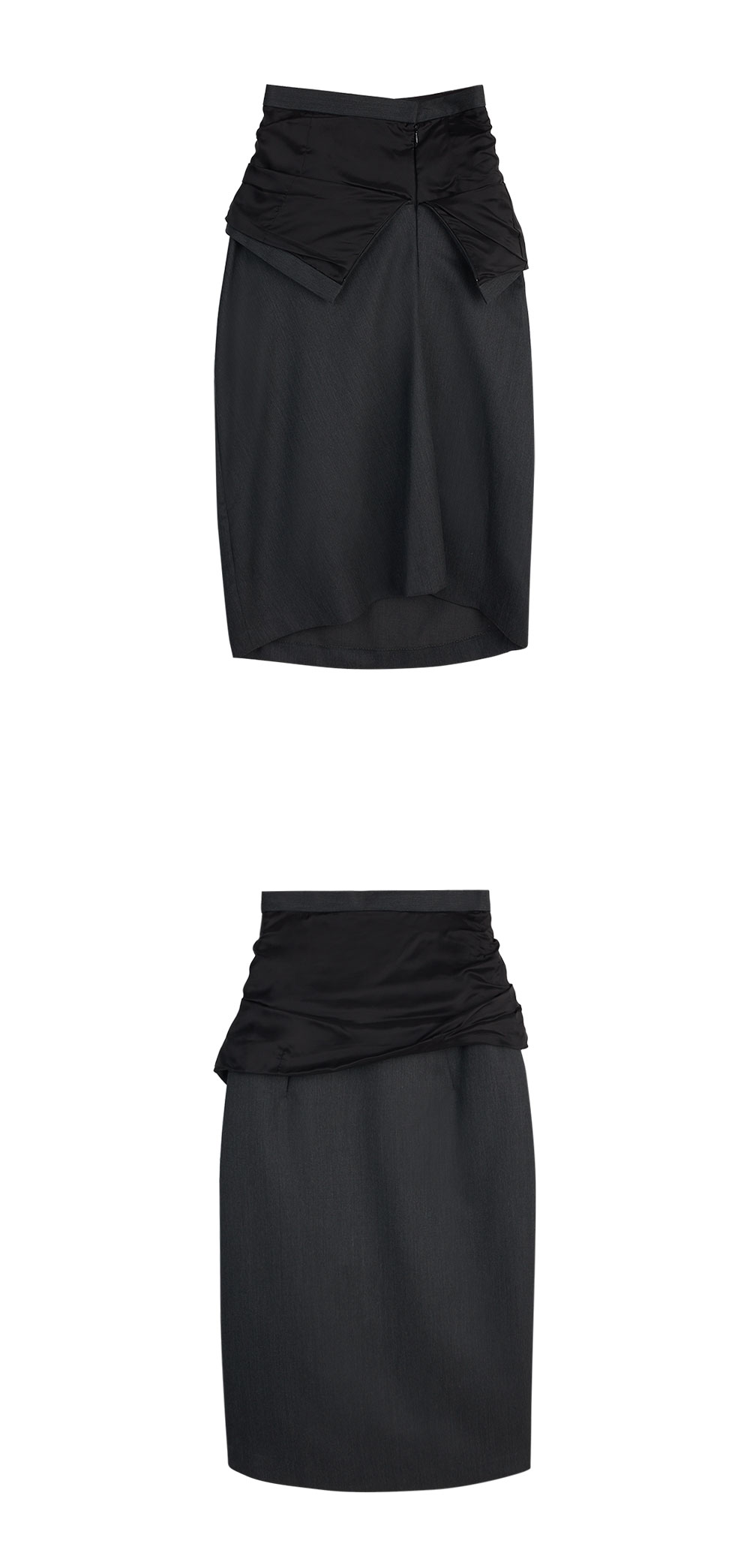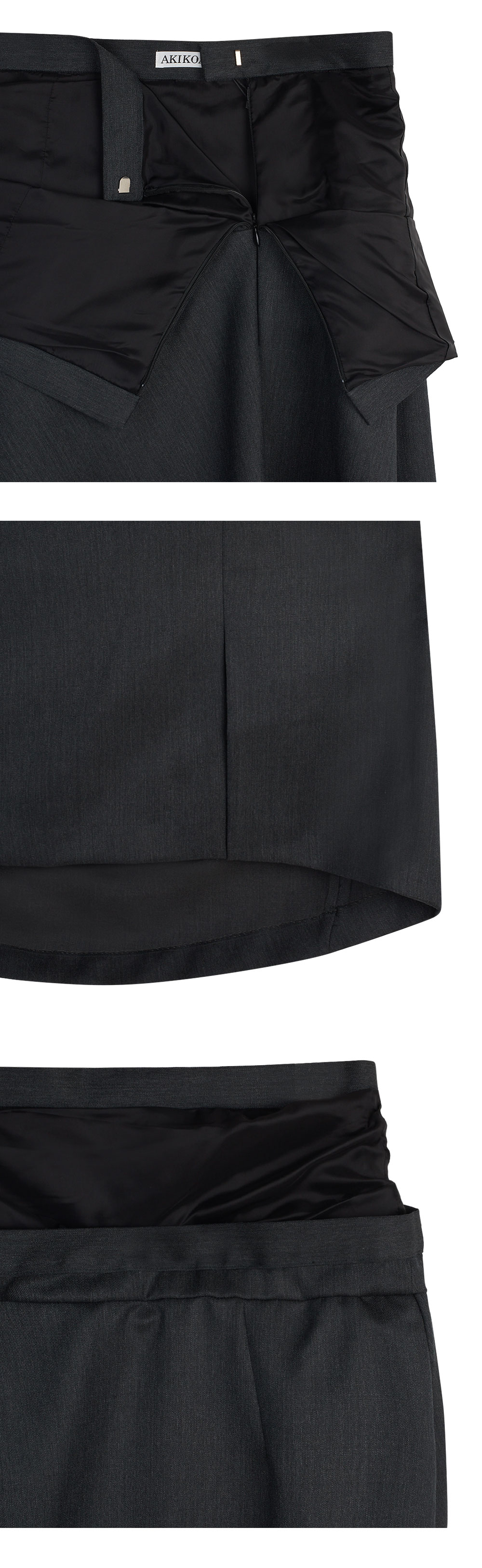 깔끔한 디자인에 접힌 듯한 허리와 밑단의 드레이핑으로 포인트를 준 아키코아오키의 소니아 01 스커트입니다. - 허리가 접혀 안감이 노출된듯한 디자인 - 전면 좌측 히든 지퍼 클로징 - 비대칭적인 밑단으로 연출되는 드레이핑