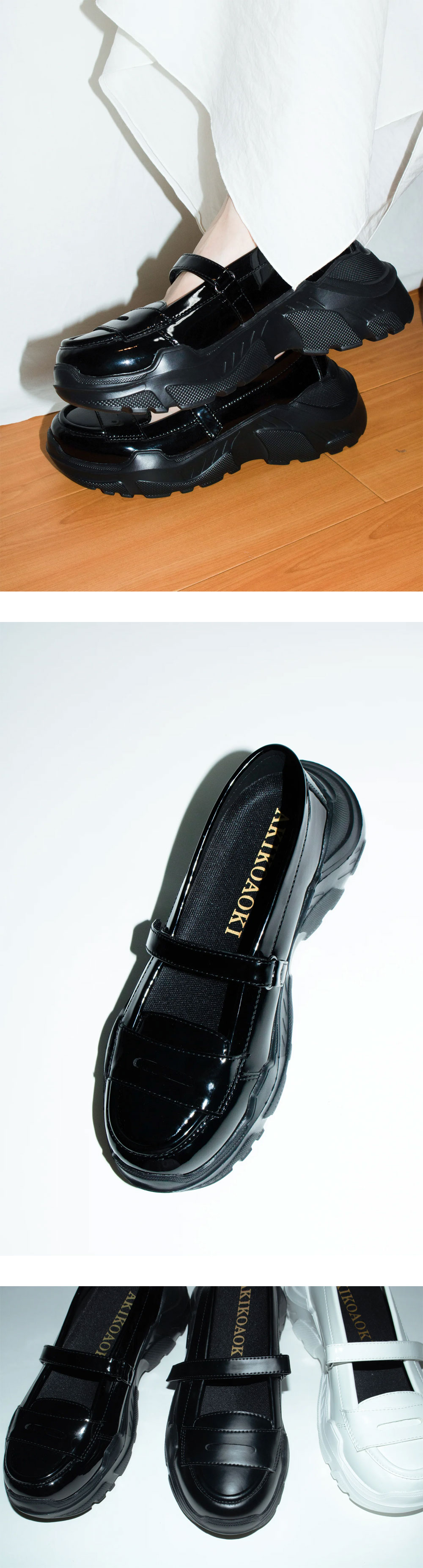 편안하면서도 페이던트 소재가 매력적인 AKIKOAOKI의 쁘띠 페이던트 로퍼 슈즈입니다. - 로퍼의 디테일이지만 아웃솔은 스니커즈 소재로 제작 - 가볍고 편안한 착용감 - 부착된 벨트와 여유있는 앞코로 안정감 있는 착용감