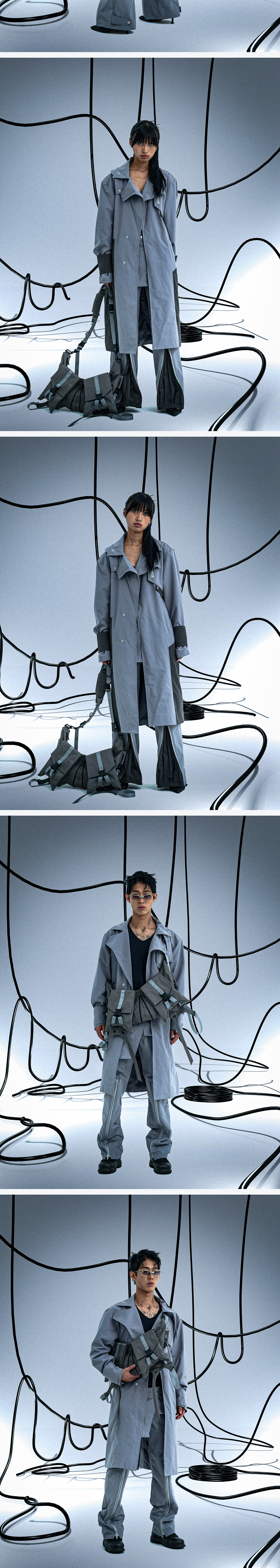 풀오브썬 고스트 인 더 쉘 지퍼 플리츠 팬츠 그레이 & 다크 그레이