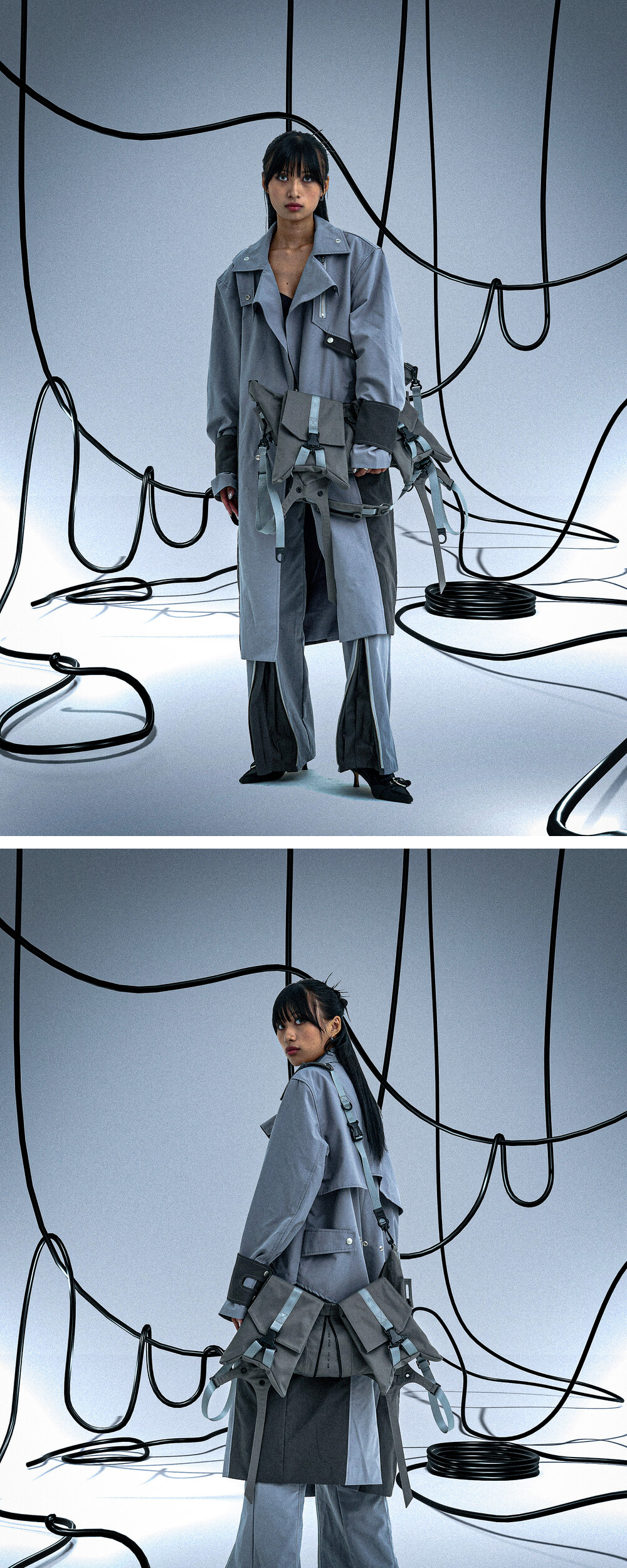 Full of Ssun Ghost In The Shell Zip Pleat Pants Grey & Dark Grey
