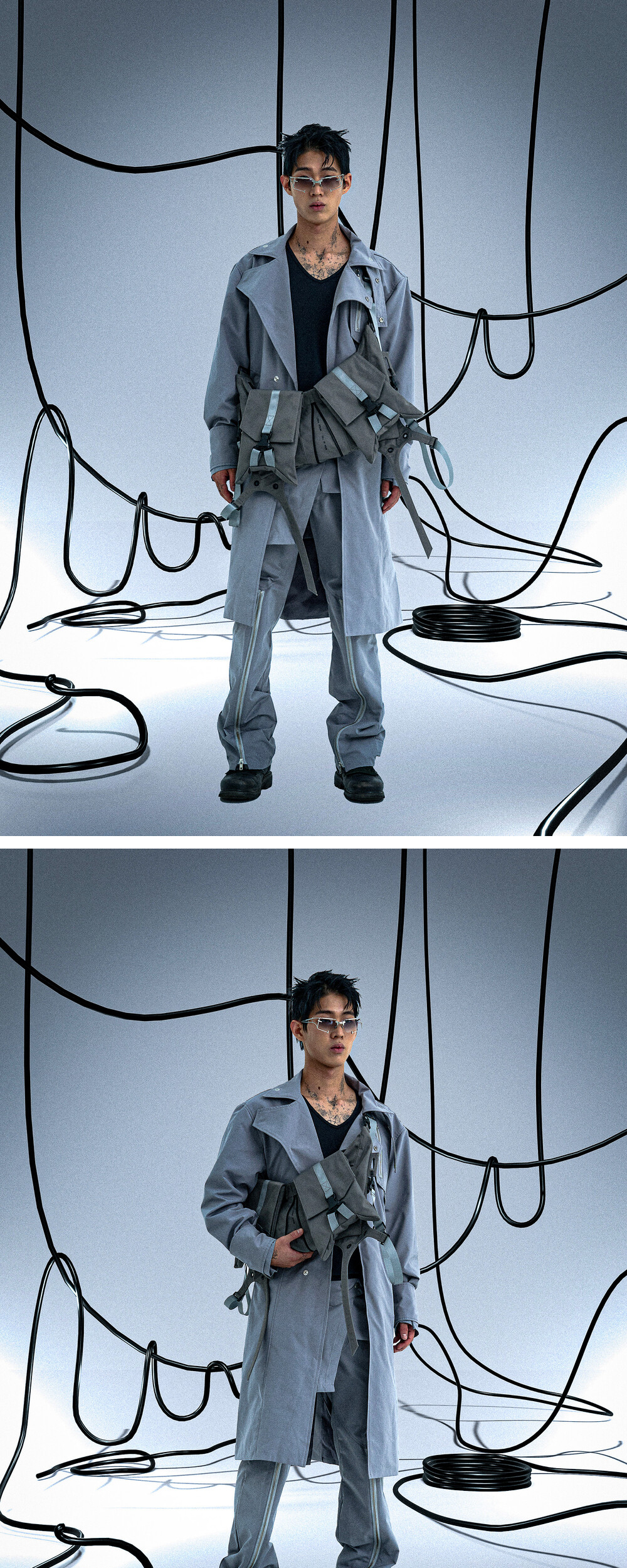 Full of Ssun Ghost In The Shell Zip Pleat Pants Grey