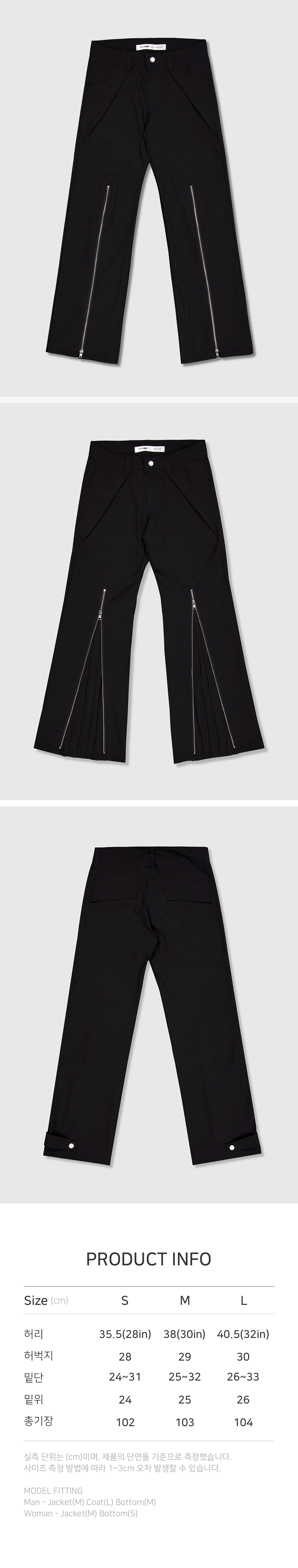 주문 후 1~2일 후 순차 발송됩니다 (주말, 공휴일 제외) - 'LoremIpsum' 브랜드와 콜라보한 팬츠제품 - 지퍼 플리츠 디테일 - YKK사의 바지지퍼 및 부자재(퍼맥스) (제품 색상은 모델컷이 아닌 제품컷의 색상이 실제색상과 더가깝습니다)