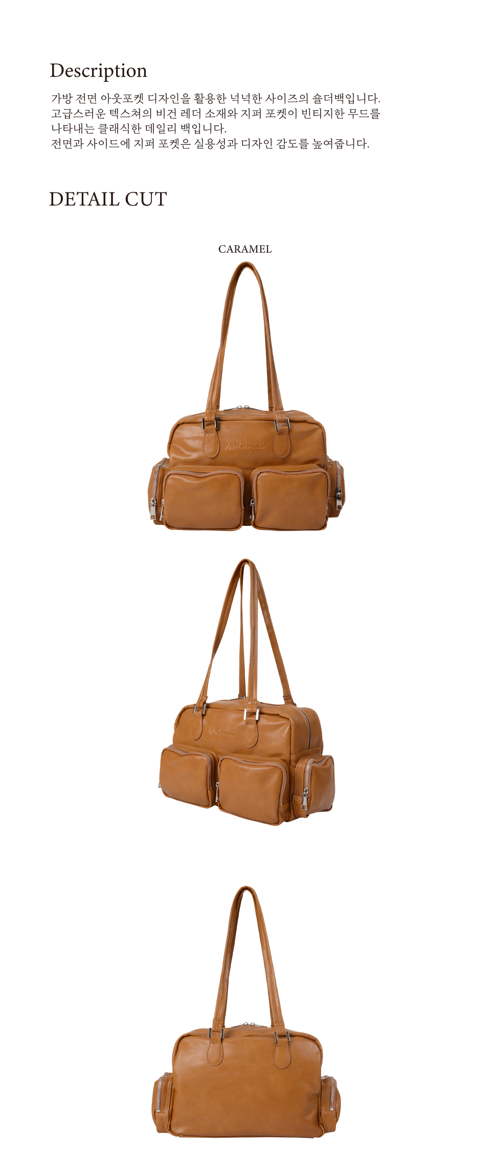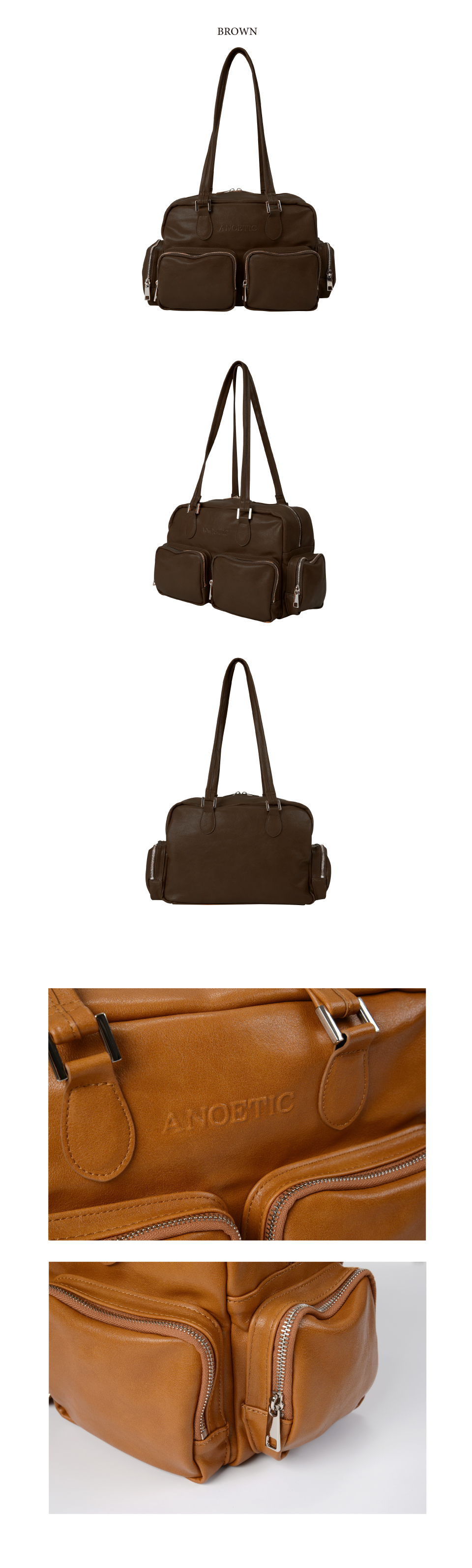 아노에틱 클래식 아웃포켓 숄더 백 브라운