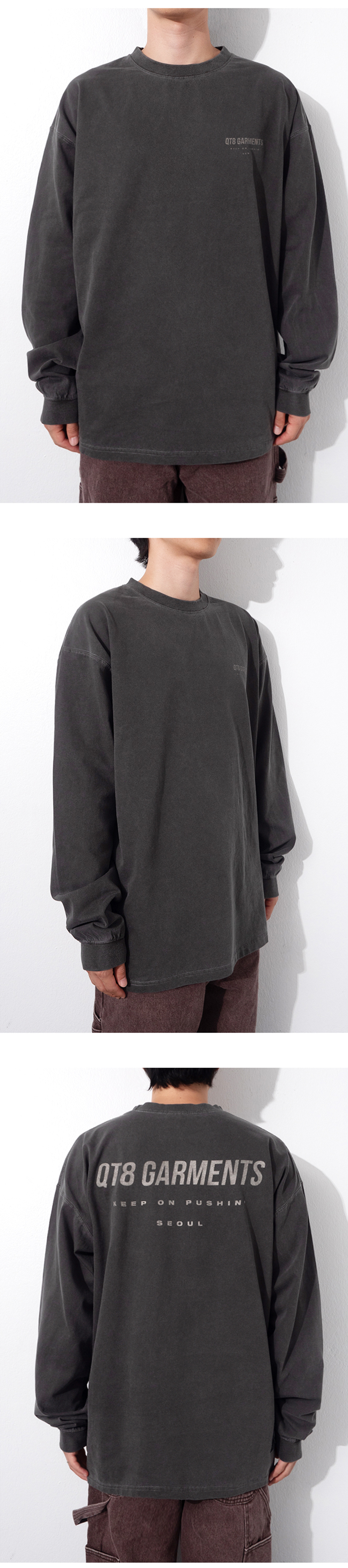 큐티에잇 가먼츠 피그먼트 심플 롱슬리브 차콜