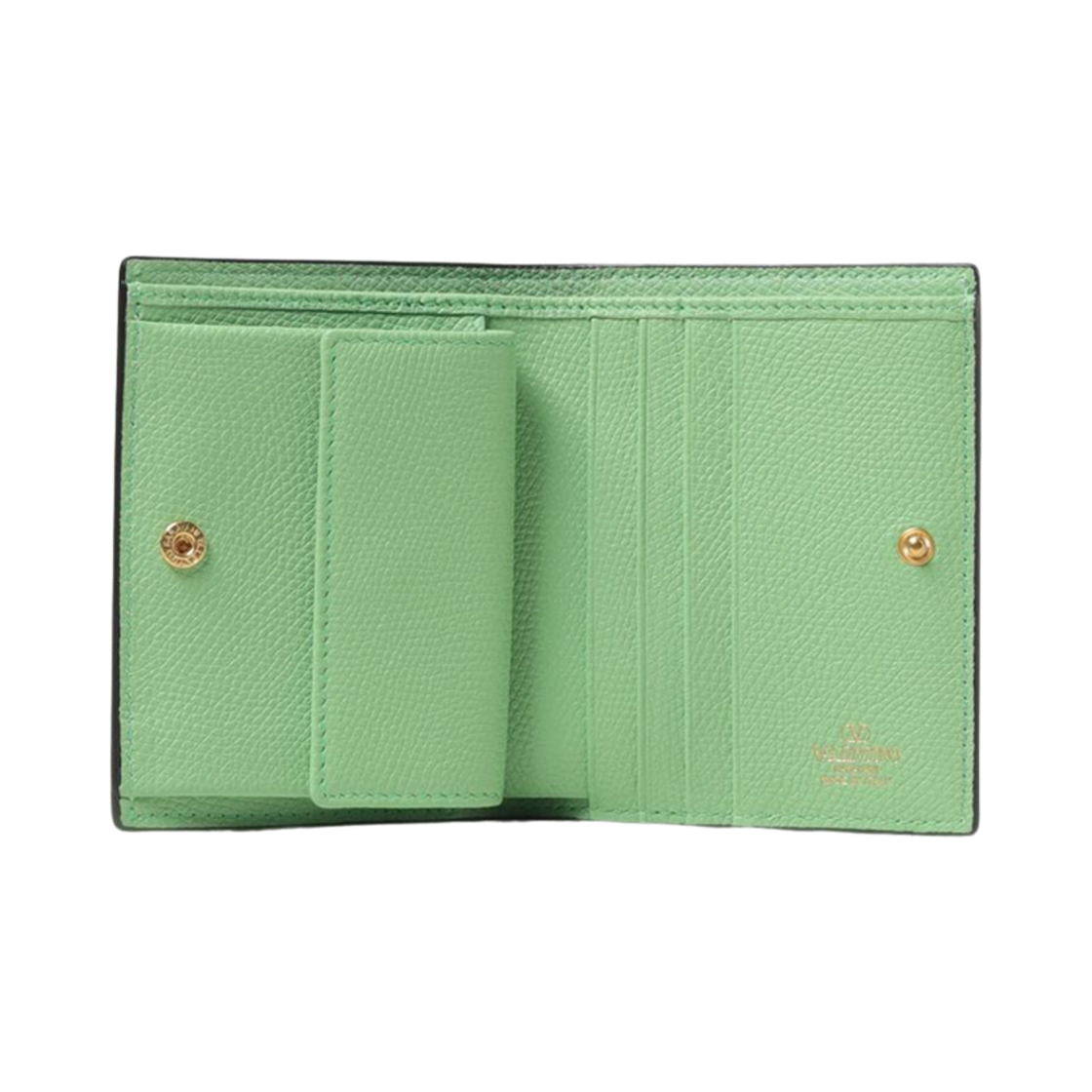 Valentino Compact Vlogo Signature Grainy Calfskin Wallet Green