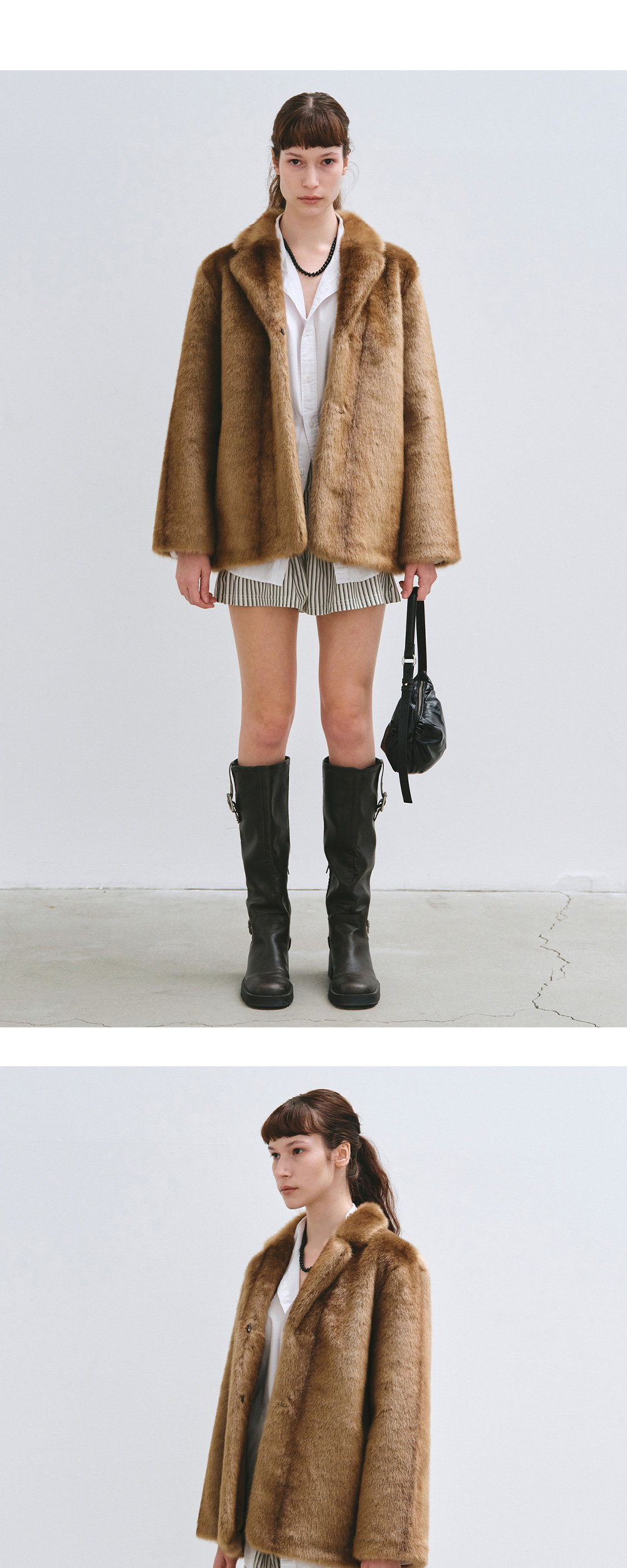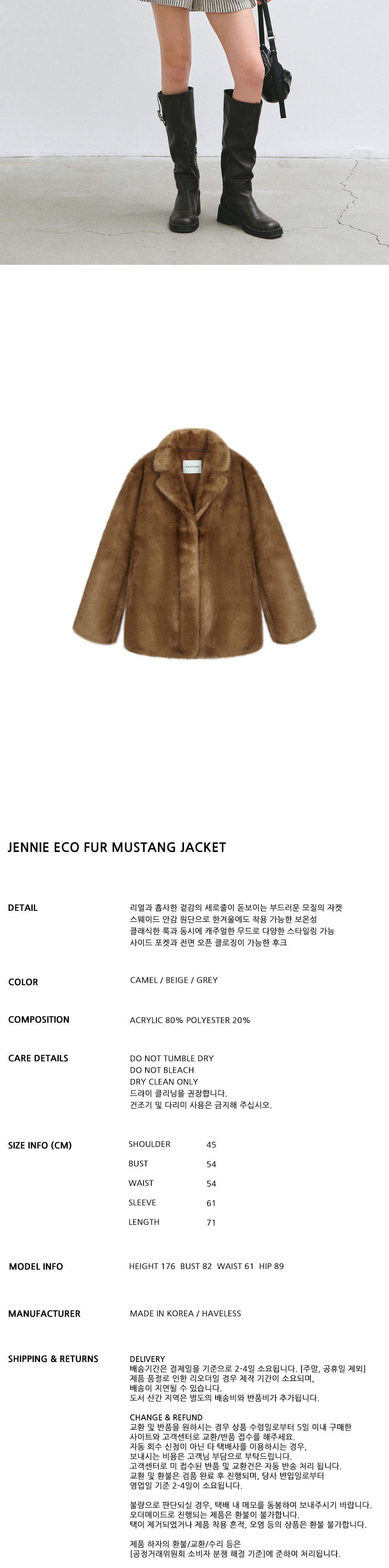 해브레스 제니 에코 퍼 무스탕 재킷 카멜