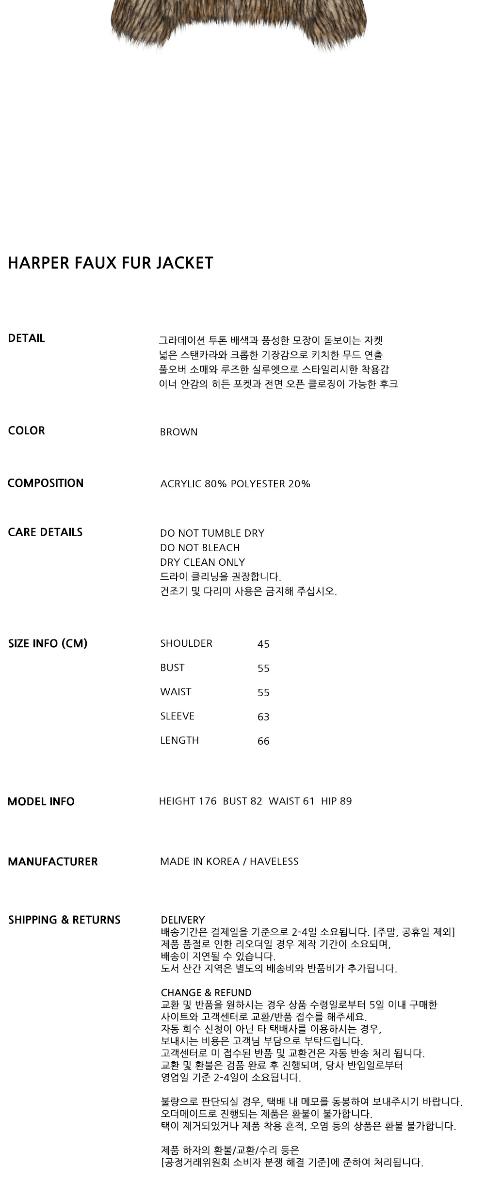 해브레스 하퍼 페이크 퍼 재킷