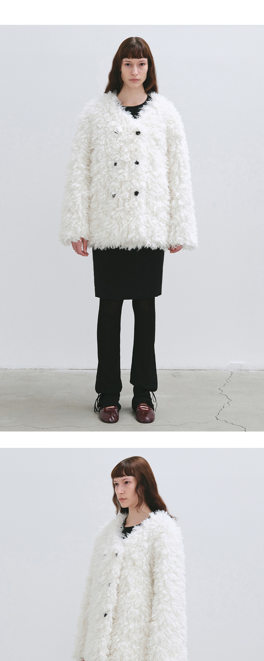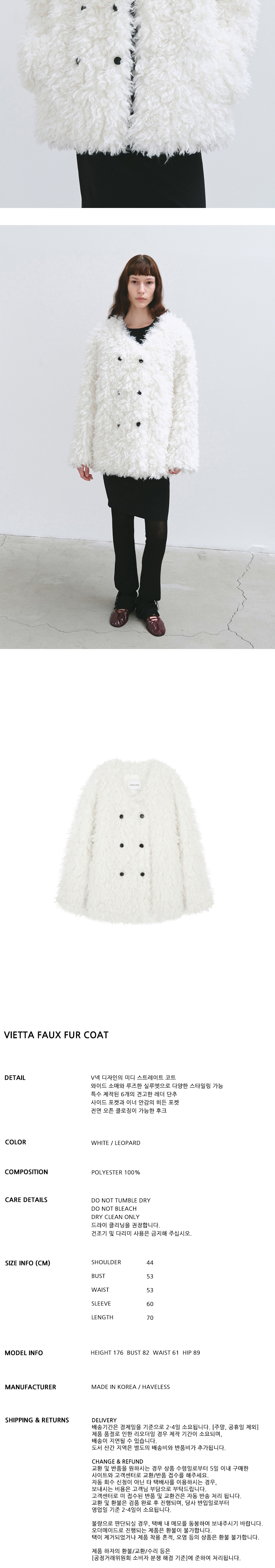 해브레스 비에타 페이크 퍼 코트 화이트