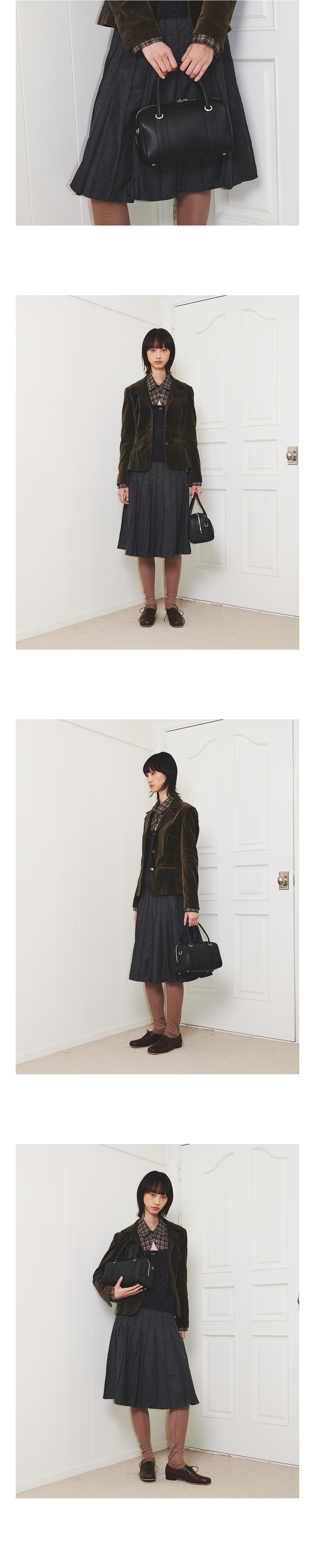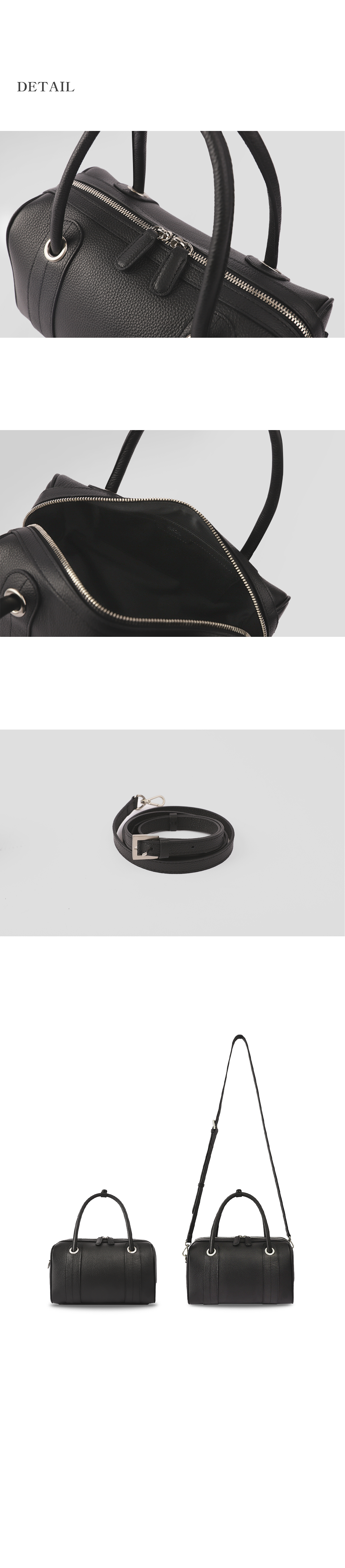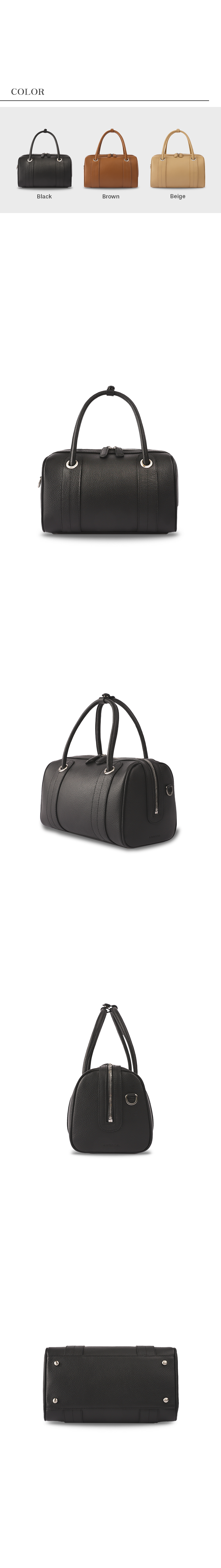 보스턴 형식의 백으로 루에다 미니 백의 미디엄 사이즈 가방입니다. 오플 질감의 이태리 소가죽으로 제작되었으며 부드러운 터치감과 소프트한 쉐입이 특징인 가방입니다. 추가로 제공되는 크로스 스트랩을 활용하여 다양한 무드를 연출하실 수 있습니다. 넉넉한 사이즈로 제작되어 수납의 용이성을 더하였습니다.