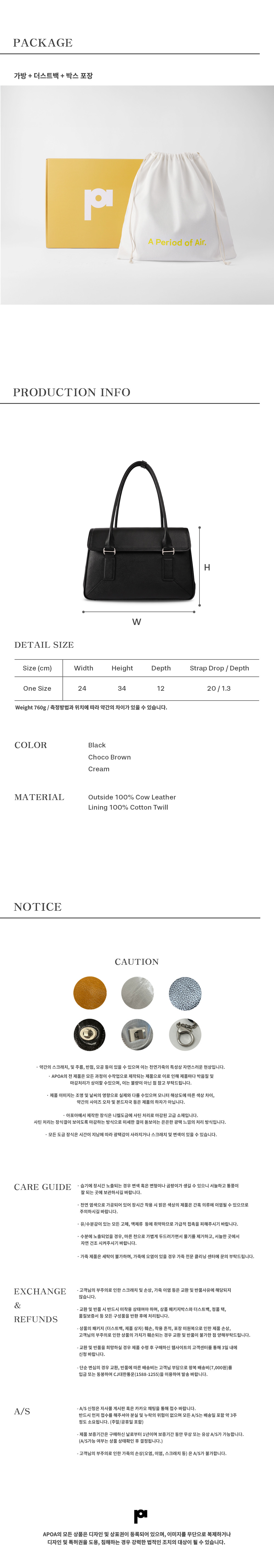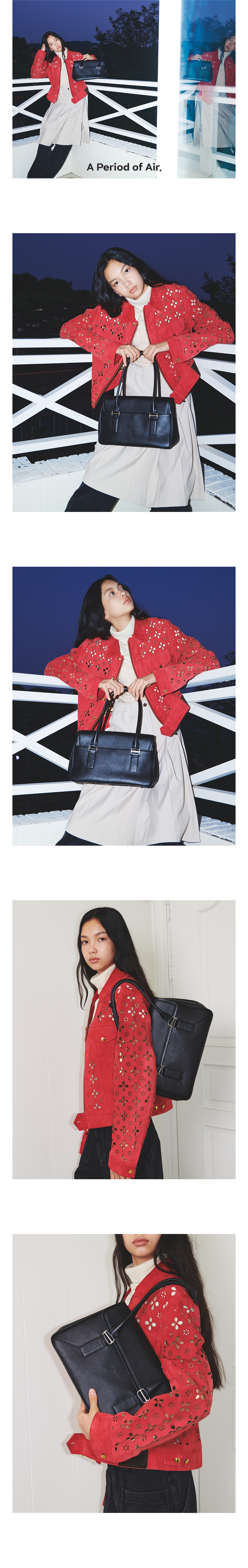 각이 잡힌 형태의 Bag으로 핸들 디테일과 절개가 돋보이는 디자인의 가방입니다. 사이드의 스냅으로 다양한 연출이 가능하며, 바디 폭을 넓혀 제작하여 여유로운 수납이 가능합니다. 오플 질감의 은은한 텍스처감을 느낄 수 있는 가방으로 미니멀하면서도 고급스러운 무드를 연출할 수 있습니다.