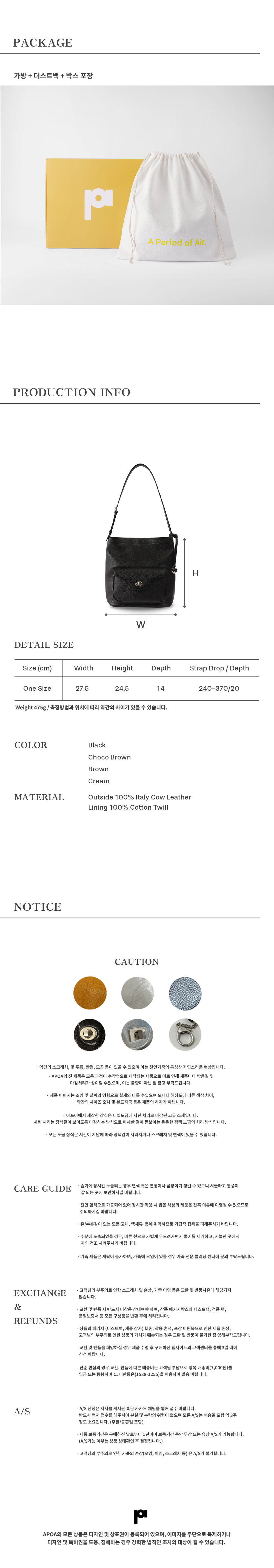 Suave leather bucket bag은 오플 질감의 소가죽으로 제작된 가방입니다. 정면 중앙 포켓과 중앙 바디로 제작되었으며, 버킷 백의 형태로 데일리 하면서도 유니크한 디자인의 가방입니다. 부드러운 터치감과 은은한 텍스처감을 느낄 수 있는 가방으로 중앙 바디의 폭을 넉넉하게 주어 수납의 용이성을 더하였습니다.