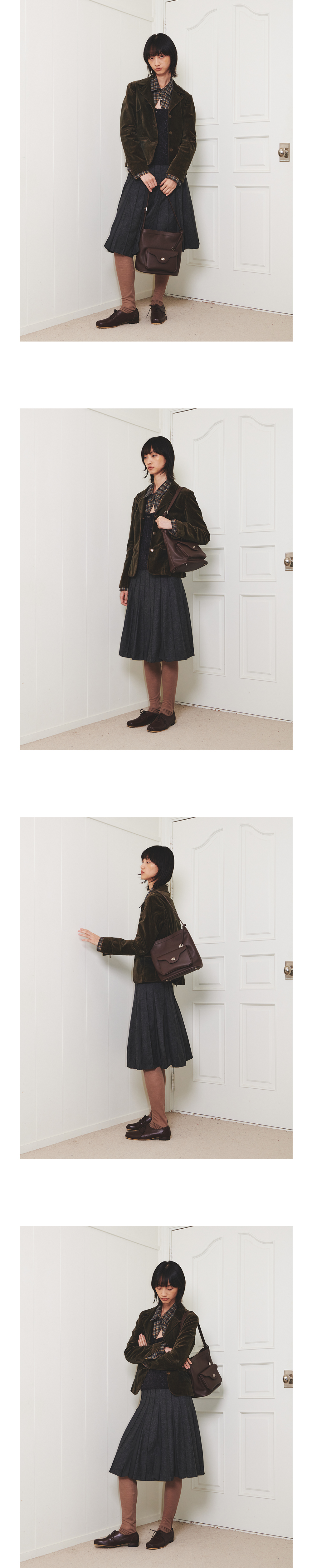 Suave leather bucket bag은 오플 질감의 소가죽으로 제작된 가방입니다. 정면 중앙 포켓과 중앙 바디로 제작되었으며, 버킷 백의 형태로 데일리 하면서도 유니크한 디자인의 가방입니다. 부드러운 터치감과 은은한 텍스처감을 느낄 수 있는 가방으로 중앙 바디의 폭을 넉넉하게 주어 수납의 용이성을 더하였습니다.