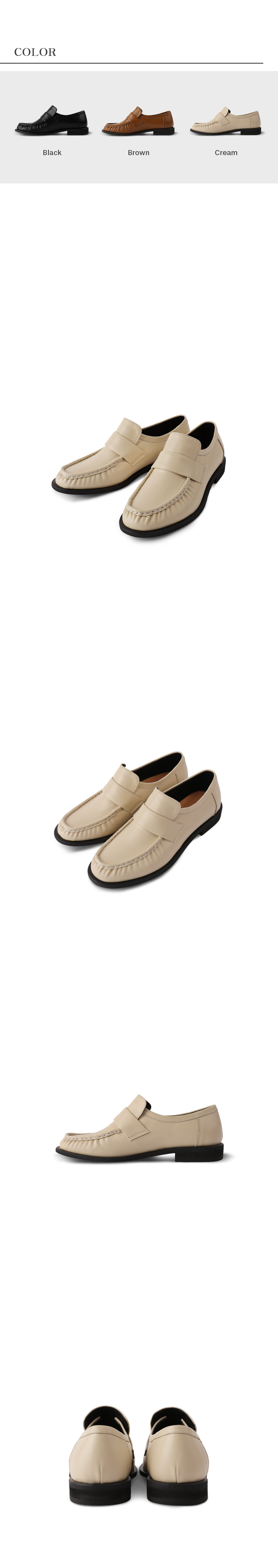 미니멀한 디자인의 밴드 디테일과 촘촘하고 견고하게 접은 셔링의 입체감이 특징인 슈즈입니다. 편안한 착화감을 위해 가볍고 부드러운 매트리스 폼을 사용하였으며, 이태리 명품 브랜드 비브람 밑창을 사용해 뛰어난 탄성과 내구성을 자랑하며, 쉽게 마모되지 않습니다. 고급스러운 라운드 쉐입의 토우와 은은한 텍스처의 이태리 소가죽으로 제작되어 다양한 스타일의 연출이 가능합니다.