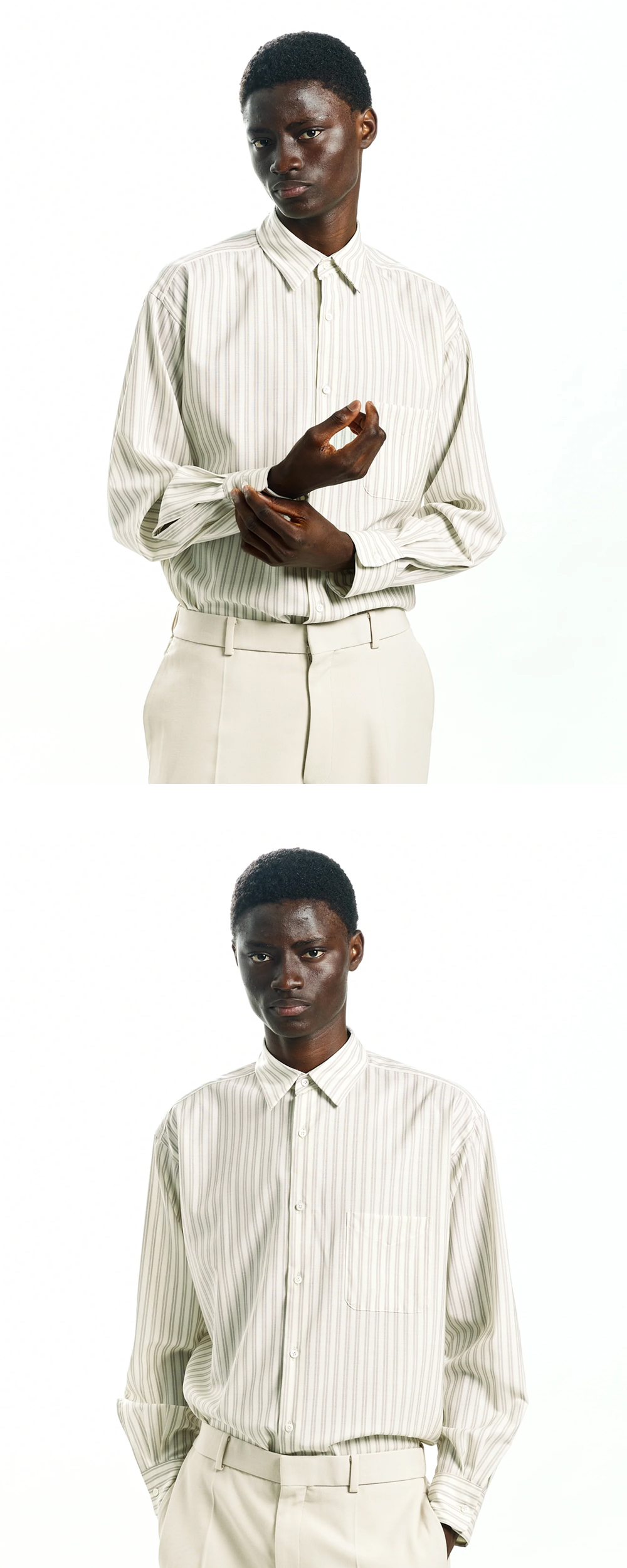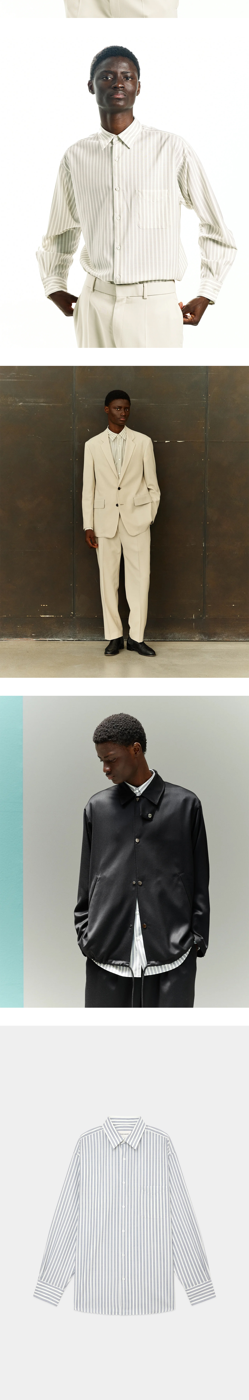 유려한 실루엣을 위해 디테일을 줄인 마카웨어의 스트라이프 셔츠입니다. - 넉넉한 바디 및 소매 사이즈 - 전면 플래킷을 생략하여 실루엣을 최대로 활용 - 100% Non Mulesing 울로 제작됨 - 울 특유의 아름다운 광택감 * 마지막 모델샷을 제외한 나머지 모델샷은 에크루-그레이 컬러입니다.