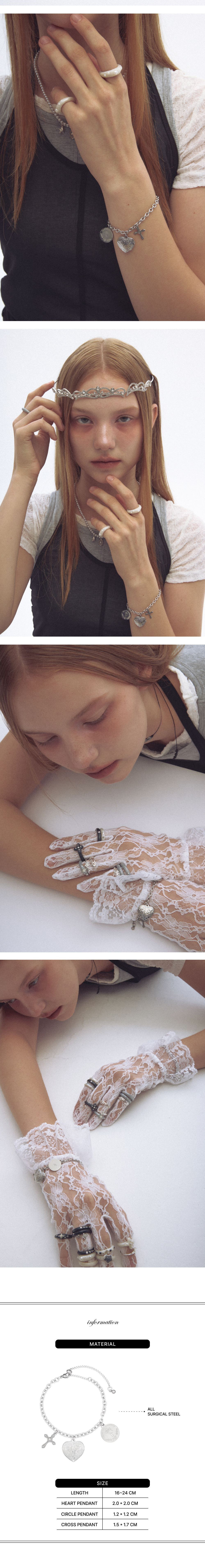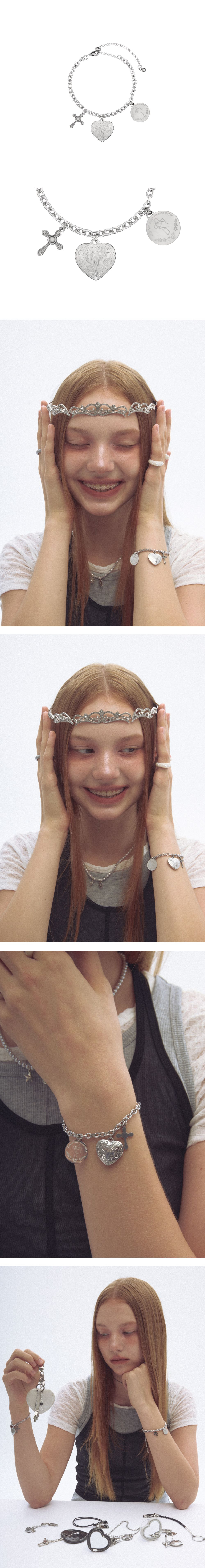 과감한 크기와 볼드함이 돋보이는 팔찌입니다. 길이 조절이 가능하며, 이동 가능한 볼장식을 추가해 착용에 용이하도록 제작했습니다. 엔틱한 디자인의 펜던트들을 사용해 nff만의 브랜드 무드를 표현합니다.