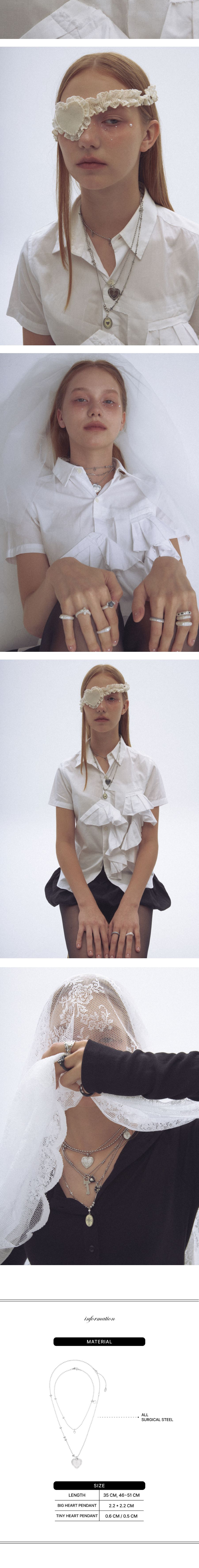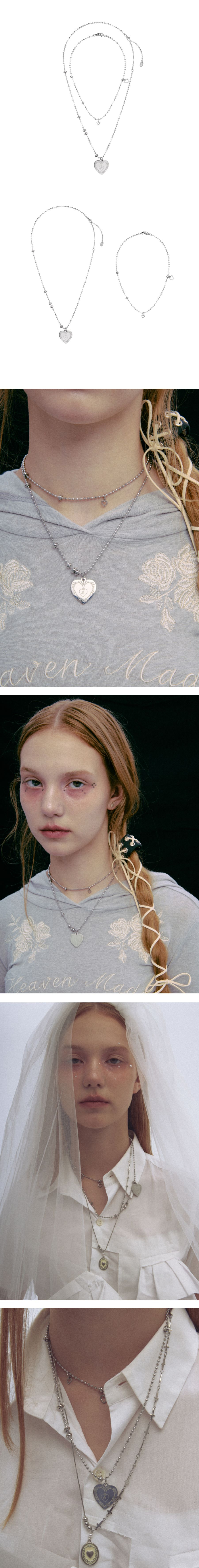 작고 큰 하트 펜던트들을 레이어드할 수 있는 목걸이 입니다. 레이어드 세트상품이지만 개별 착용이 가능해 다양하게 연출할 수 있습니다. 이동 가능한 볼장식을 사용해 펜던트의 위치를 자유롭게 이동하고 고정할 수 있도록 제작했습니다.