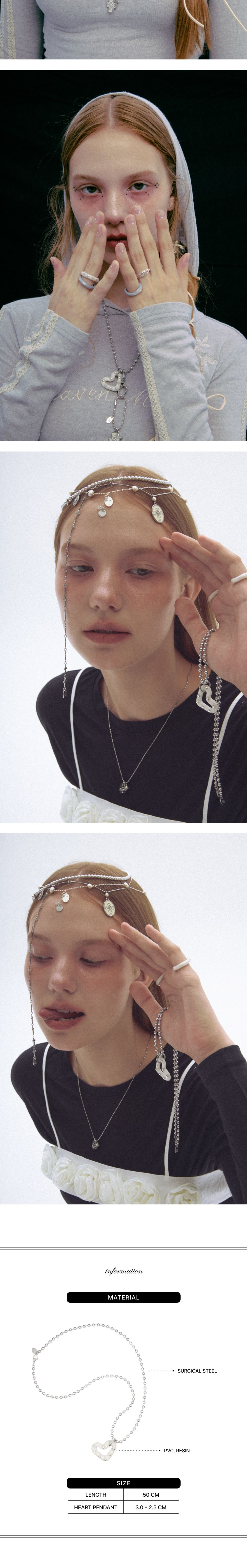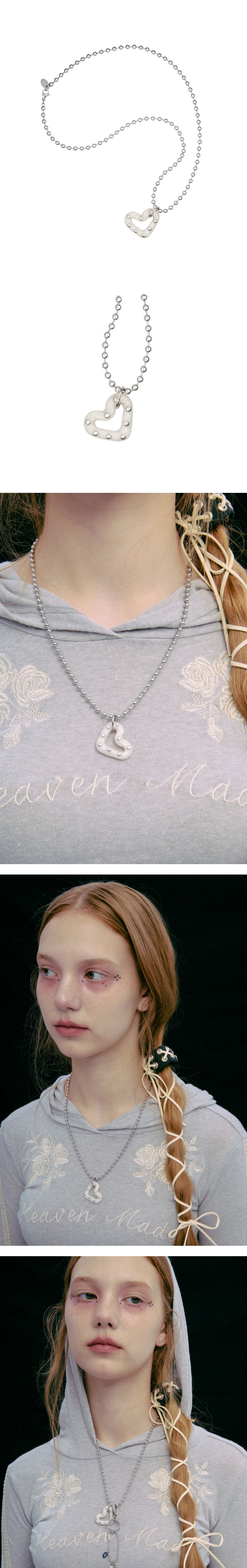 하트 펜던트의 볼륨감있고 비정형적인 쉐입이 돋보이는 목걸이 입니다. 볼체인과 펜던트의 실버 큐빅을 통일해 조화로움을 더했으며, 핸드메이드로 제작한 펜던트를 통해 nff만의 무드를 나타냅니다. 핸드메이드 특성상 컬러, 패턴 및 형태가 일정하지 않은 점 참고 바랍니다.
