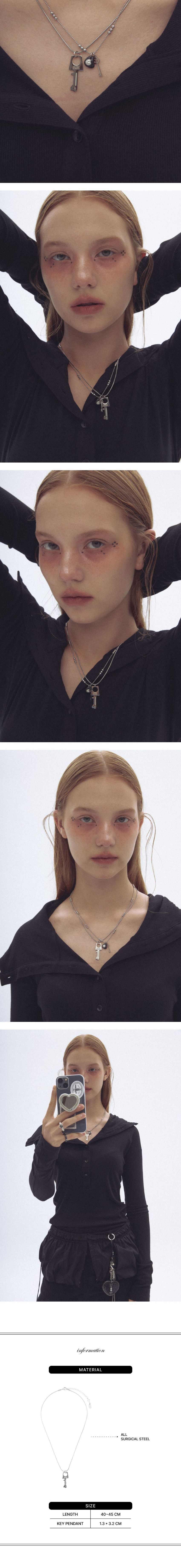 스네이크 체인에 빈티지한 키 펜던트를 더한 목걸이입니다. 심플하지만 펜던트의 쉐입과 크기로 포인트를 더했습니다.