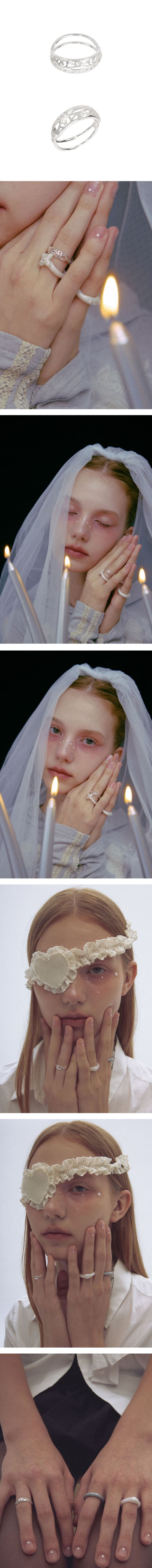 레이스 문양과 실버 투라인의 조합이 포인트인 반지입니다. 화려한 레이스 문양을 실버 라인으로 중화시켜 nff만의 빈티지하지만 트렌디한 무드를 표현합니다. * 주의사항 - 착용할 때는 향수, 크림 및 다른 화학 물질과의 접촉은 피해주세요. 씻거나 로션을 바르기 전에는 반드시 제거해야 합니다. - 착용하지 않을 때는 공기와의 접촉을 최소화할 수 있는 지퍼백이나 상자에 보관하는 것이 좋습니다. - 세척 시 부드러운 천이나 전용 세척제로 부드럽게 닦아주세요.