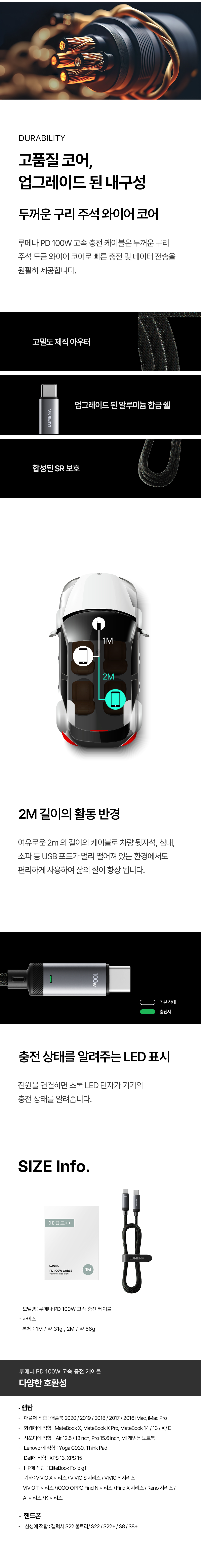루메나 PD 100W 고속 충전 케이블 2M
