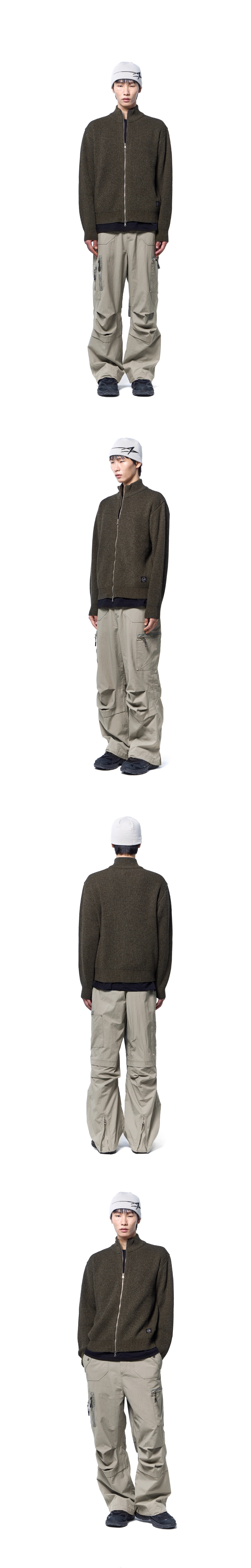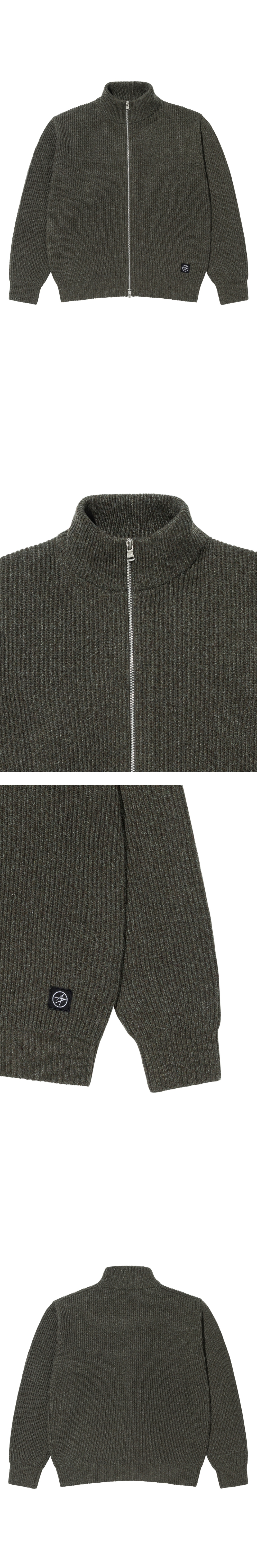 록히드마틴 LM 멜란지 풀 집업 스웨터 카키