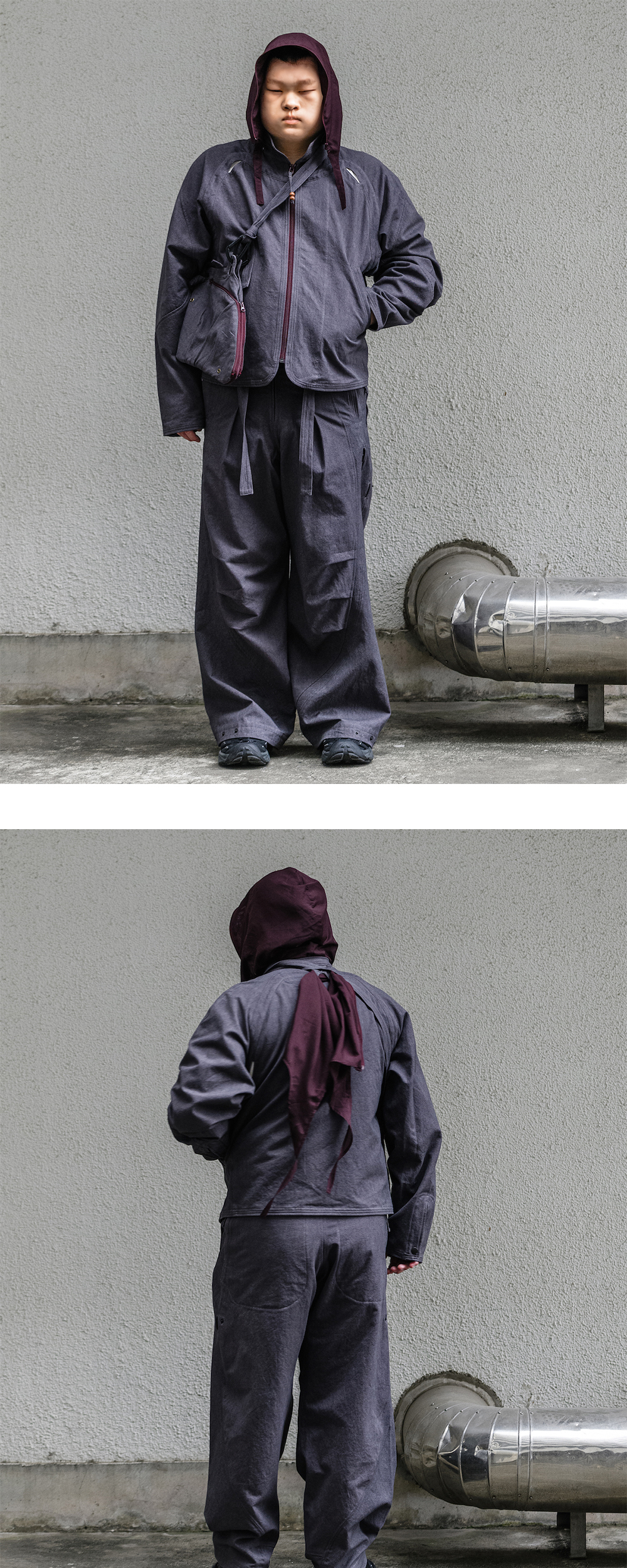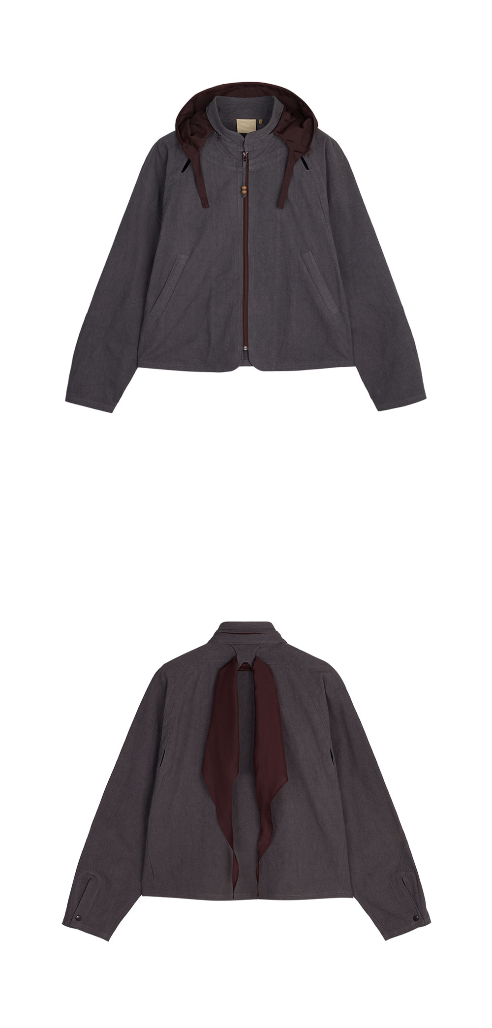 독특한 디자인의 후드로 룩에 포인트를 줄 수 있는 지안 예의 베이직 유닛 01입니다. - 탈부착 가능한 히잡 스타일의 후드 - 후드는 후면에 부착하거나 스카프로 활용 가능 - 전/후면 벤틸레이션 홀 디테일 - 겨드랑이 밑에 적용된 2개의 벤틸레이션 아일렛 - 기장이 약간 짧고 소매가 긴 디자인 - 안감이 없어 사계절 활용 가능한 아이템