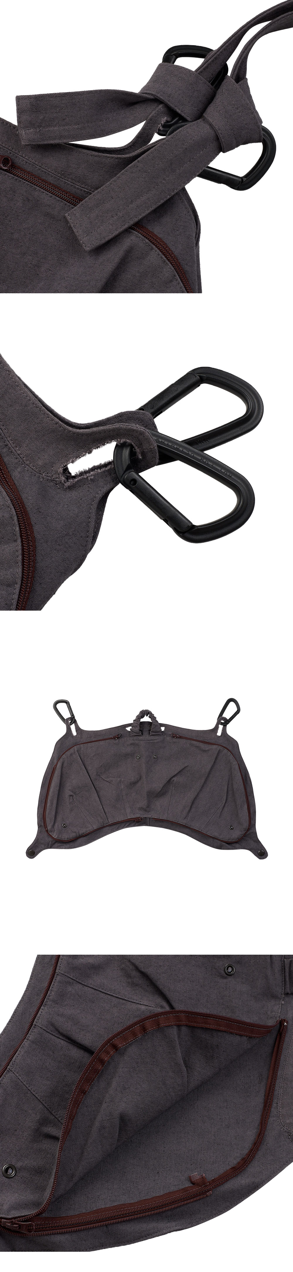 숄더백 또는 팬츠에 도킹하여 포켓으로 사용할 수 있는 지안 예의 베이직 유닛 03입니다. - 중앙 지퍼를 열어 모양 변경 - 카라비너로 가방 혹은 바지에 도킹 가능 - 스트랩 길이 조절 가능 - 거친 면 & 린넨 혼방 원단
