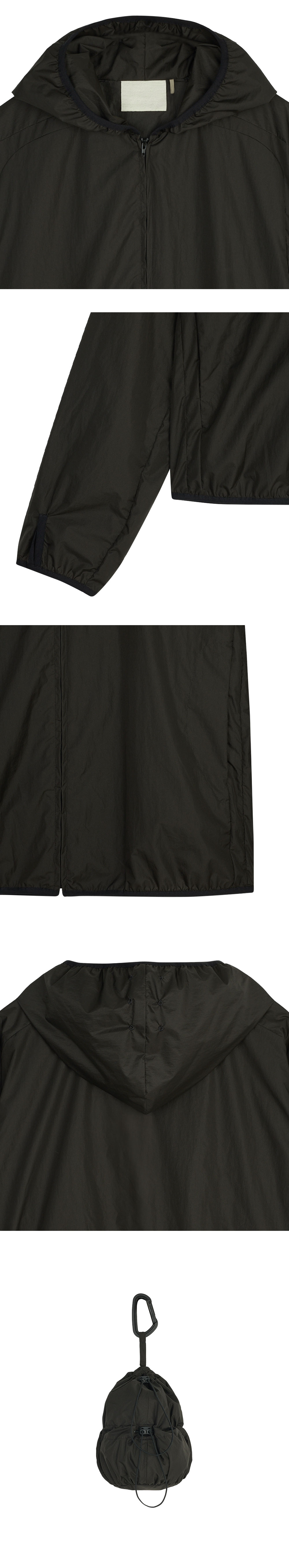호리병 모양으로 휴대가 가능한 지안 예의 베이직 유닛 05입니다. - 레귤러 핏 - 후드에 적용된 벤틸레이션 홀 - 소매 썸홀 디테일 - 경량 나일론 소재 - 패커블 백 포함