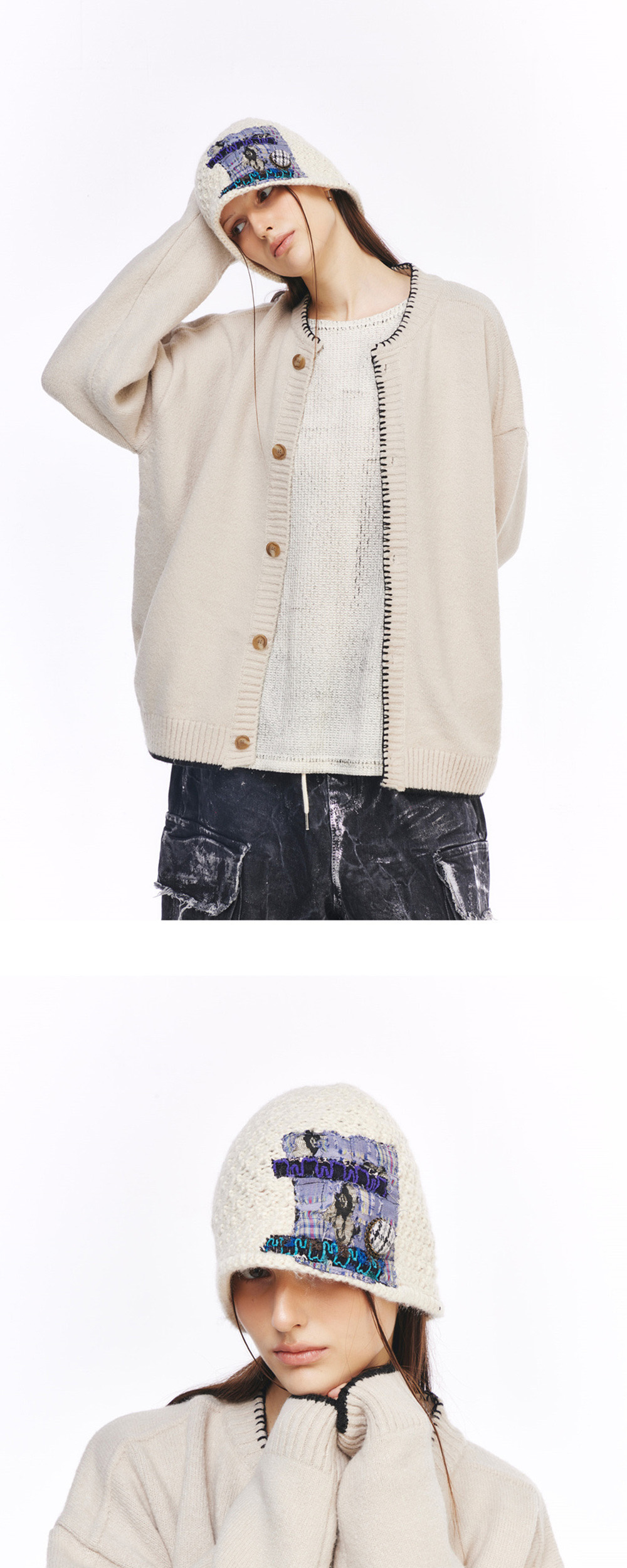 더그레이티스트 패치니트비니 아이보리