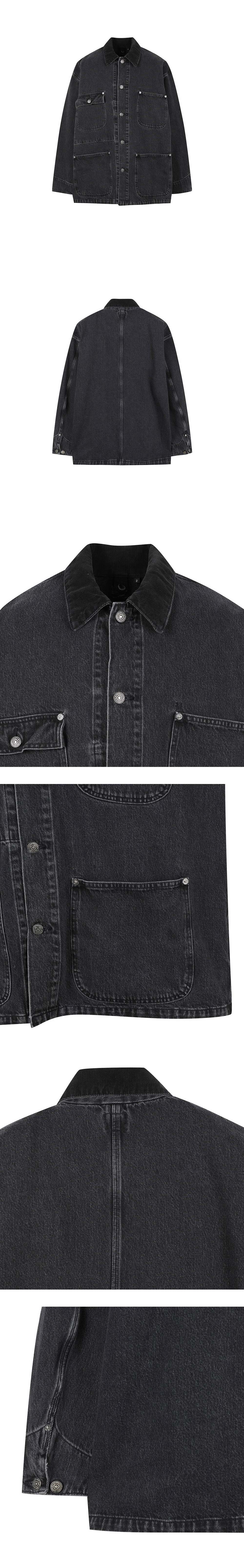 오어슬로우 릴렉스핏 커버올 블랙 데님 스톤 - 24FW