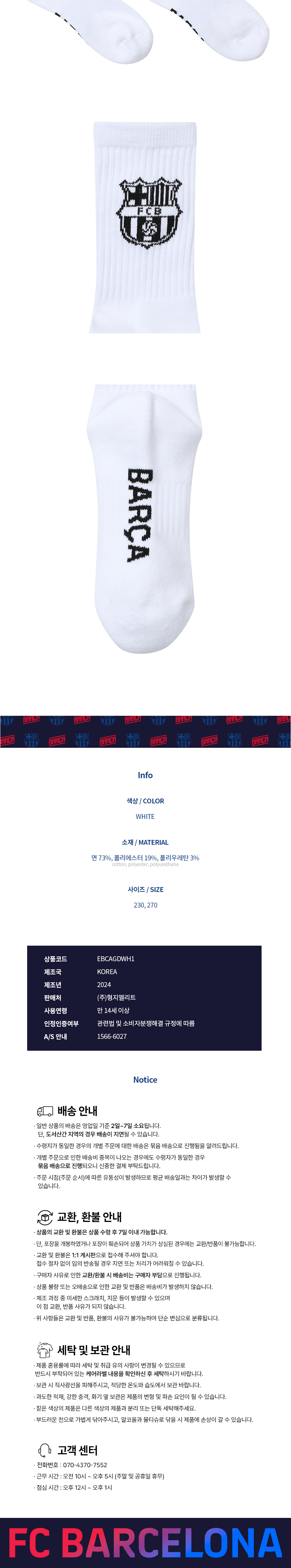 FC 바르셀로나 클래식 라인 양말 화이트