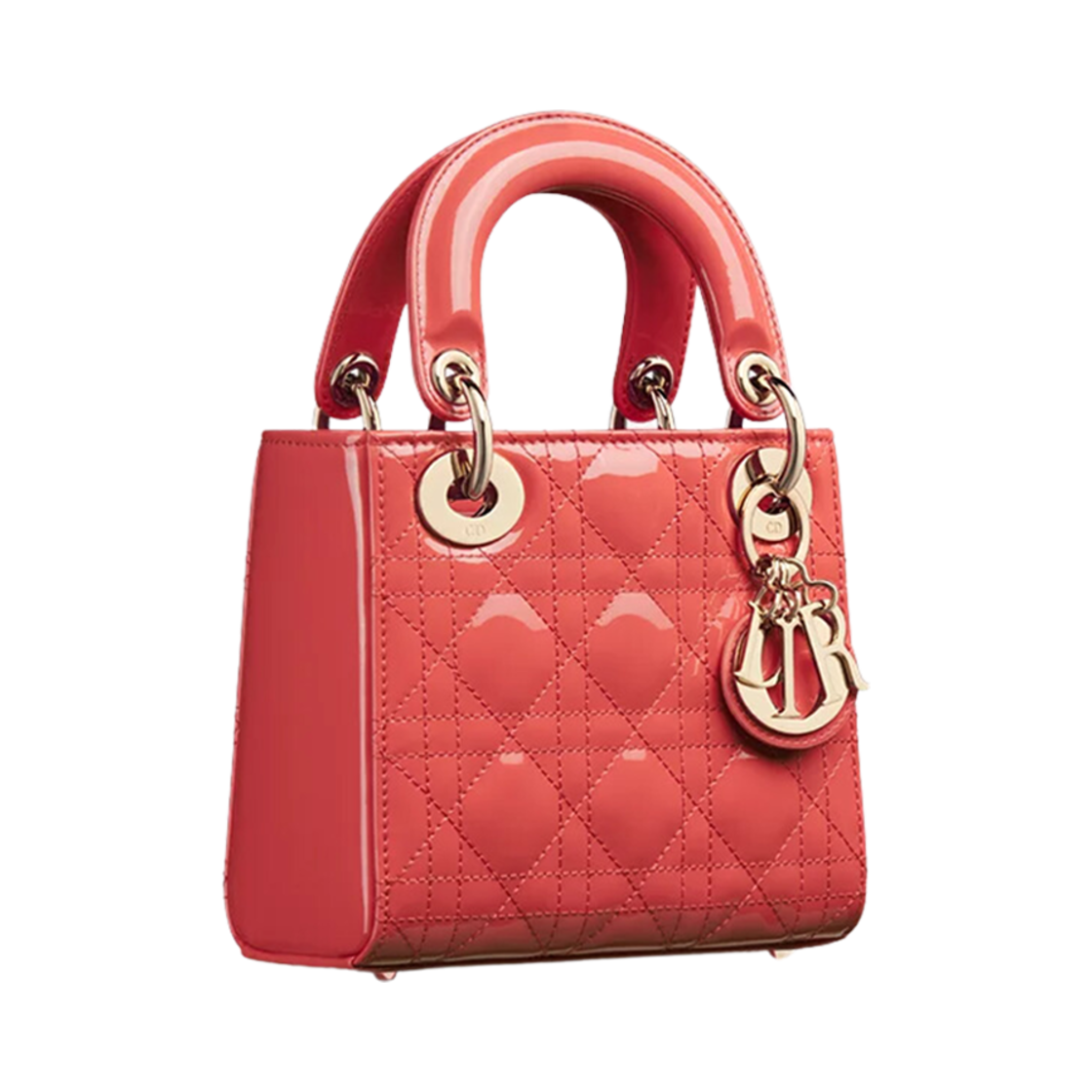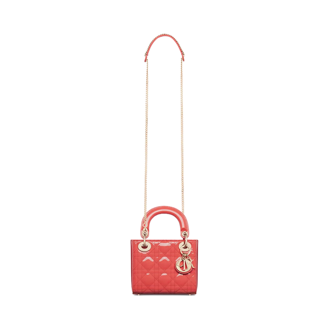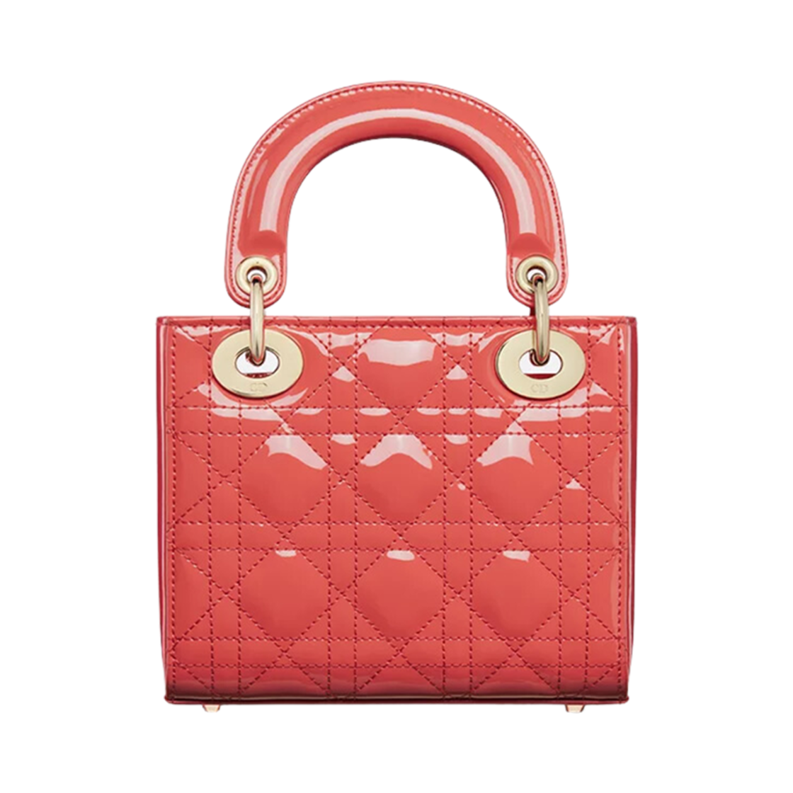 Dior Mini Lady Bag Patent Cannage Calfskin Coral