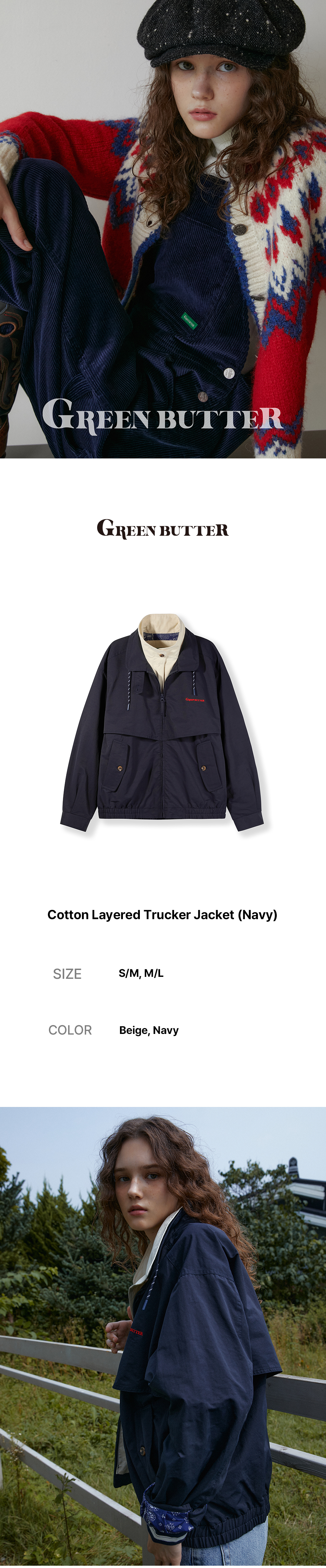 그린버터 코튼 레이어드 트러커 자켓 네이비