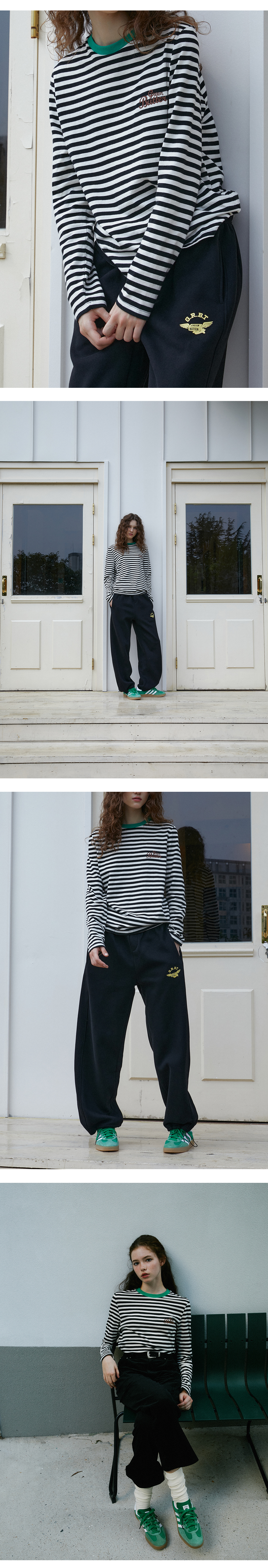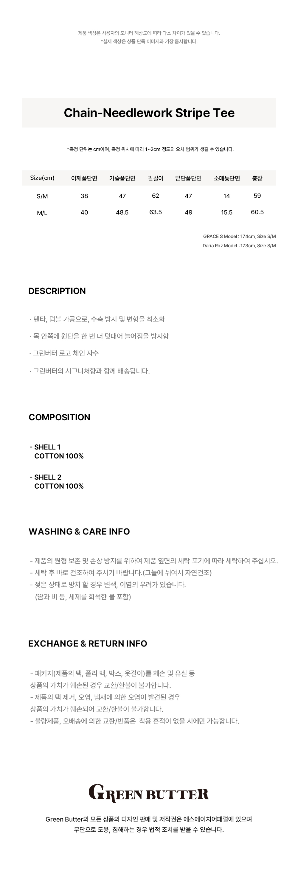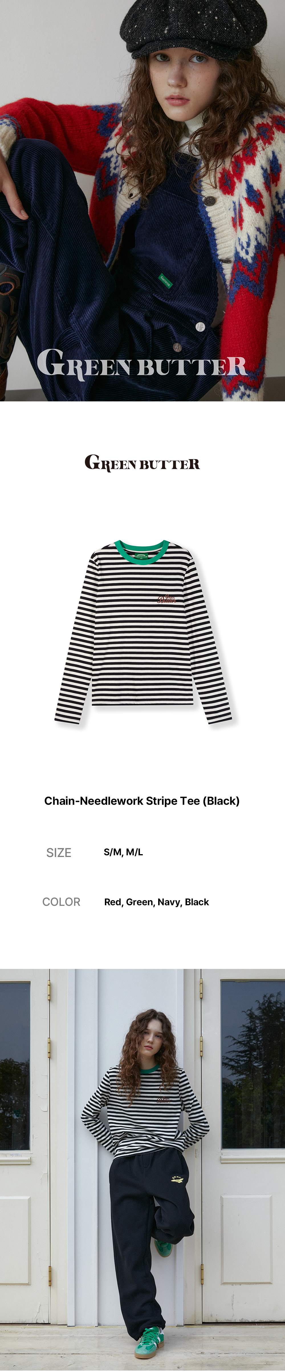 그린버터 체인 니들워크 스트라이프 티 블랙