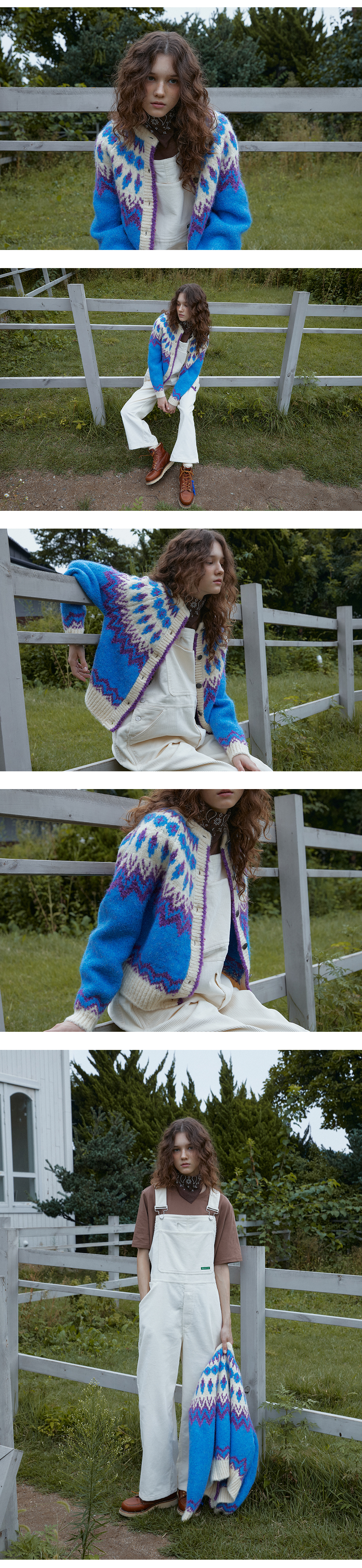 그린버터 부클 노르딕 가디건 라이트 블루