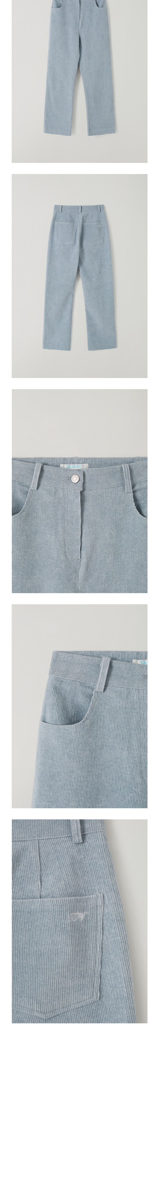 피그먼트 가공으로 매력적인 색감의 코듀로이 부츠컷 팬츠를 소개합니다. 어떠한 룩에도 기분 좋은 포인트가 되어 줄 빈티지한 컬러감의 Soft blue 컬러와 데일리로 손이 자주 가는 Gray 컬러 두 가지로 구성되어 있습니다. 코튼과 스판이 함유된 원단으로 허리와 힙을 잡아주어 착용감이 좋습니다. 세미 부츠컷 핏으로 자연스럽게 떨어지는 실루엣은 다리 라인을 슬림하게 연출해 줍니다. 전체 두줄 스티치로 탄탄하게 봉제하였으며, 뒷면의 포켓 디테일에는 TN 로고 자수로 포인트를 주었습니다.