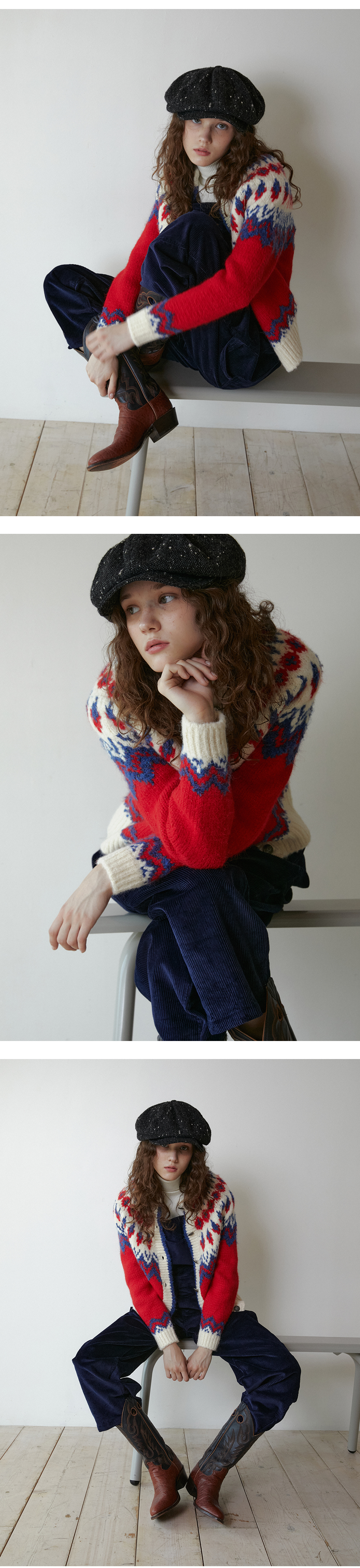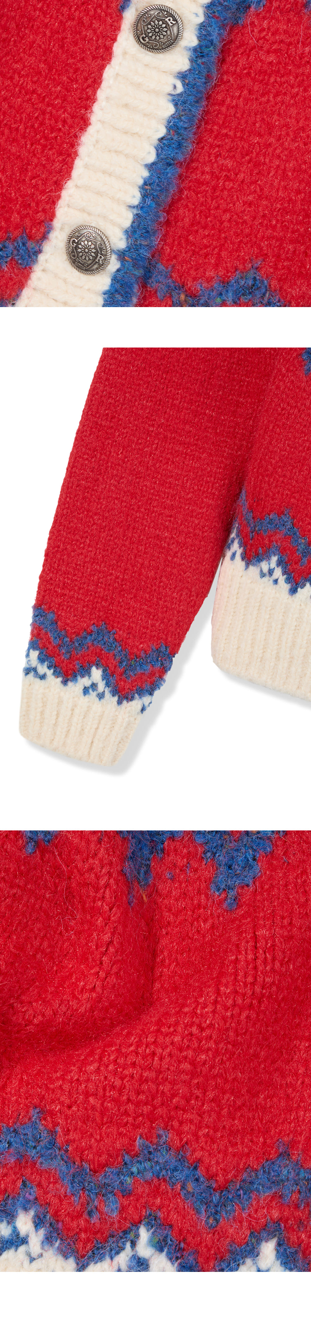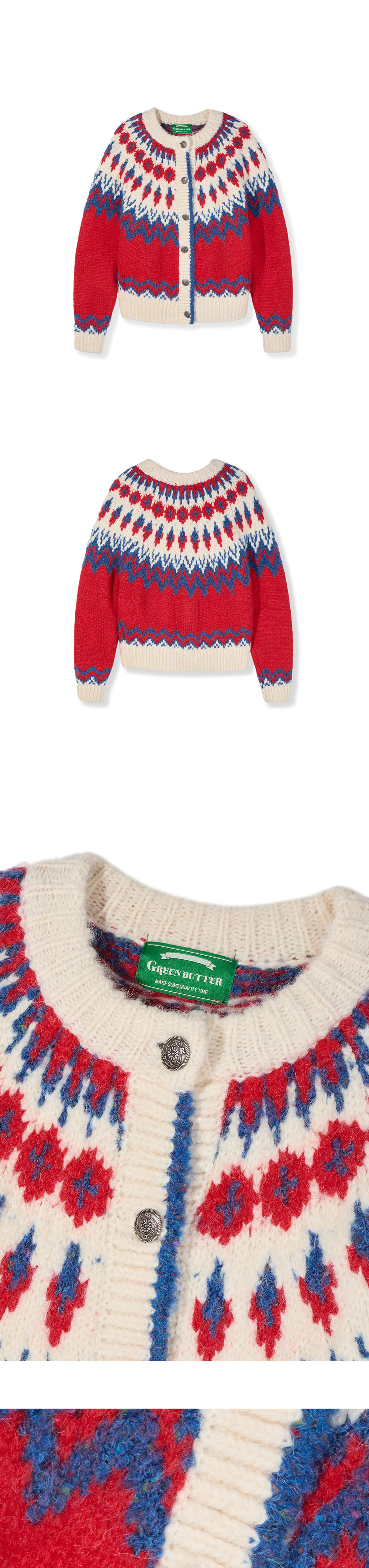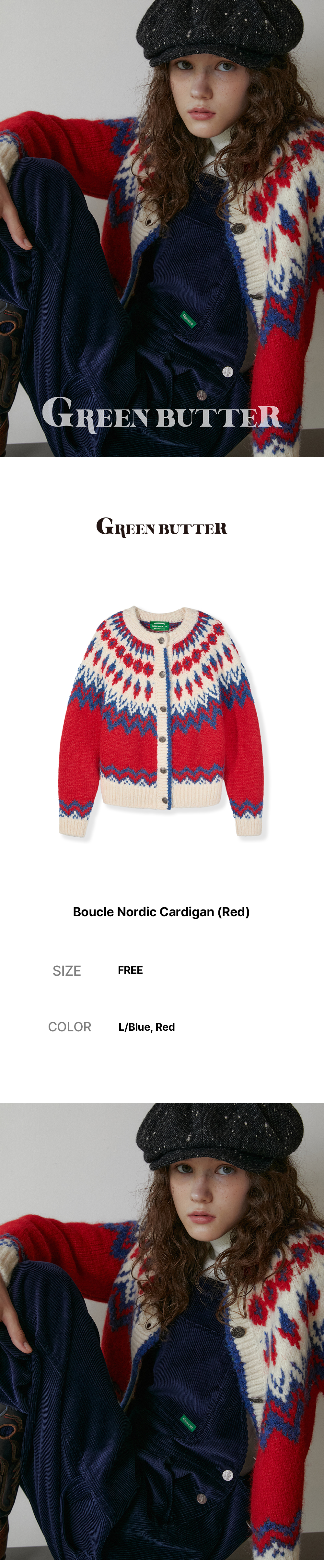 그린버터 부클 노르딕 가디건 레드