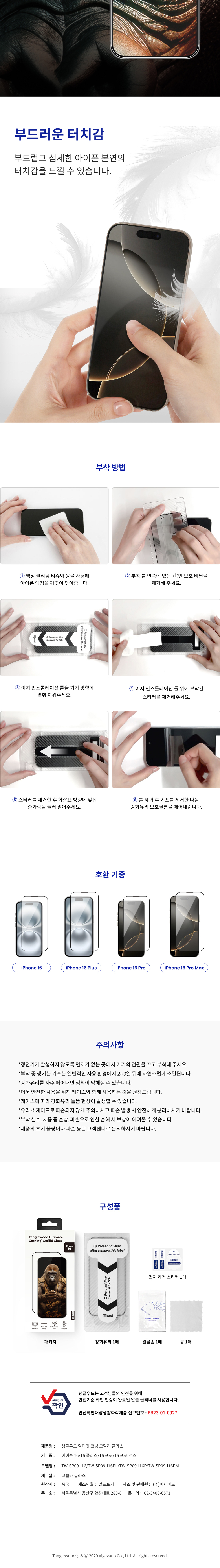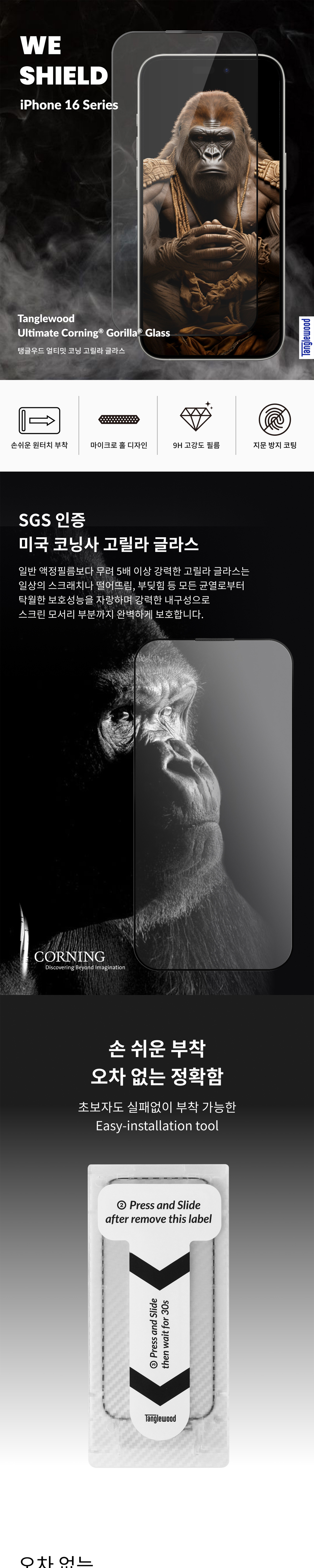 탱글우드 아이폰16시리즈 강화유리 액정보호필름 얼티밋 코닝 고릴라글라스