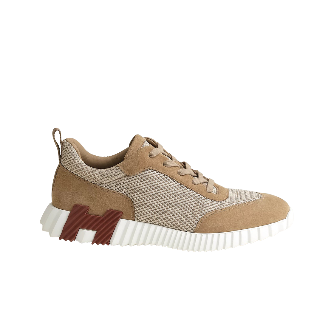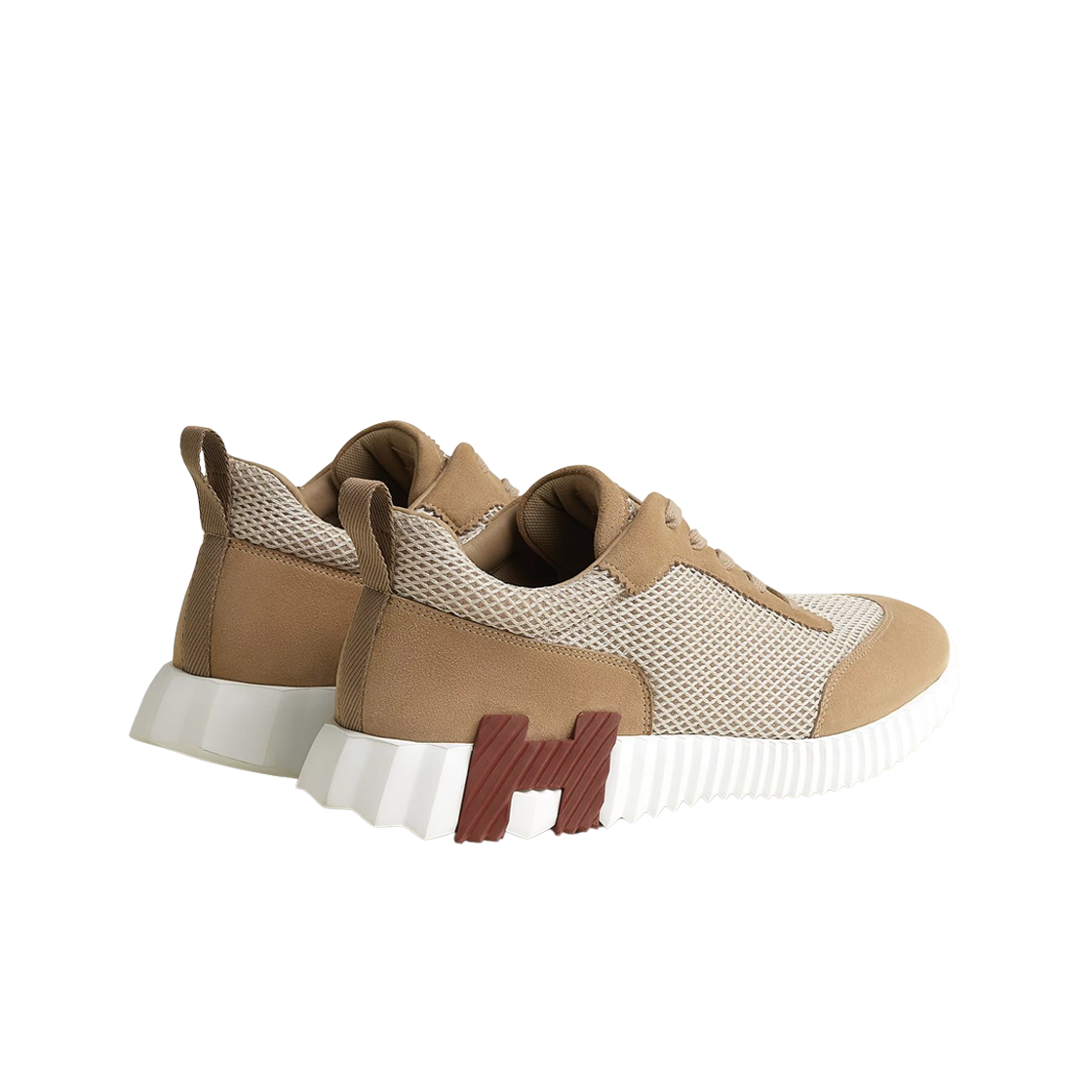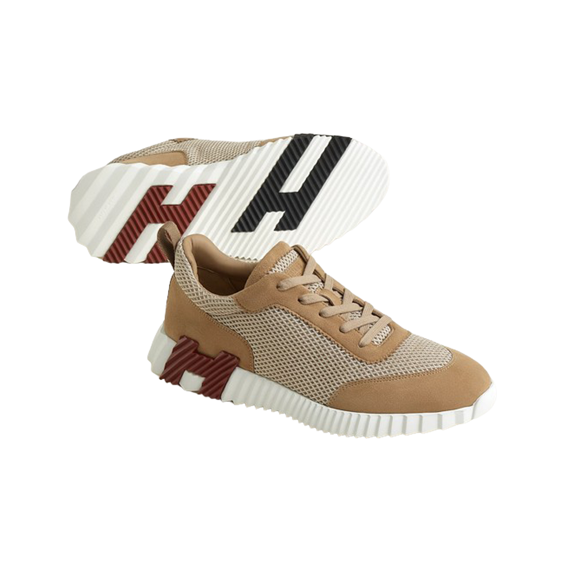 Hermes Bouncing Sneakers Graphic Mesh Suede Goatskin & Beige Argile